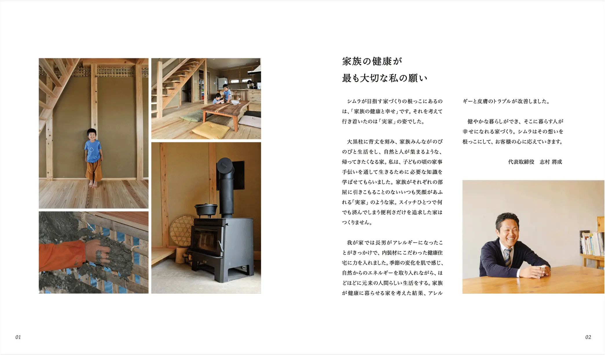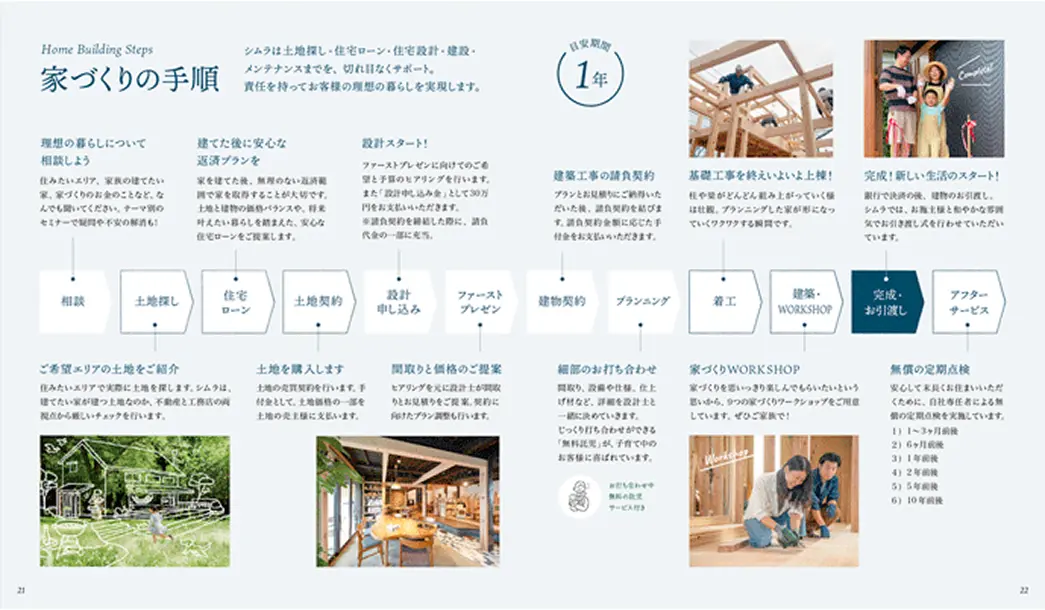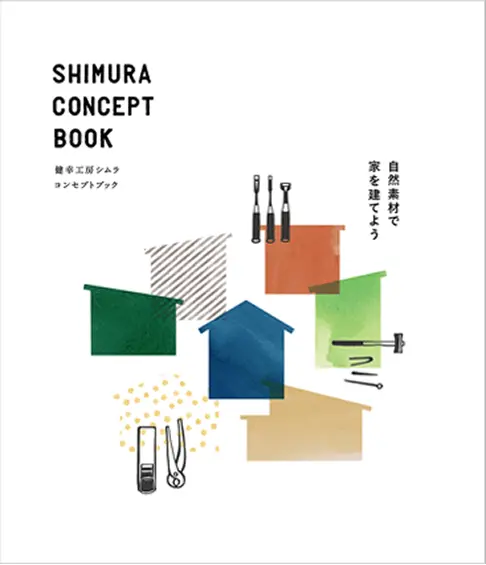 シムラの家づくりの考え方が 詰まったコンセプトブック。シムラが目指す家づくりは、 家族が健やかに暮らし、幸せになれる家づくり。