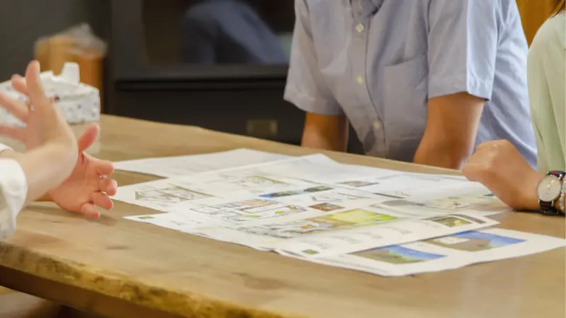 プランニングでは、設計担当者がお客様のご希望や理想の暮らし方をじっくりお伺いします。家づくりを始めたばかりの頃は、多くのご希望や迷いがあるかもしれませんが、打ち合わせを重ねる中で、不安を解消しながら優先順位を整理し、ご予算の中で本当に実現したいことを明確にしていきます。丁寧なヒアリングを通じてきちんと輪郭を捉え、そこからを解像度を高めることで、お客様の理想の住まいを共に形にします。