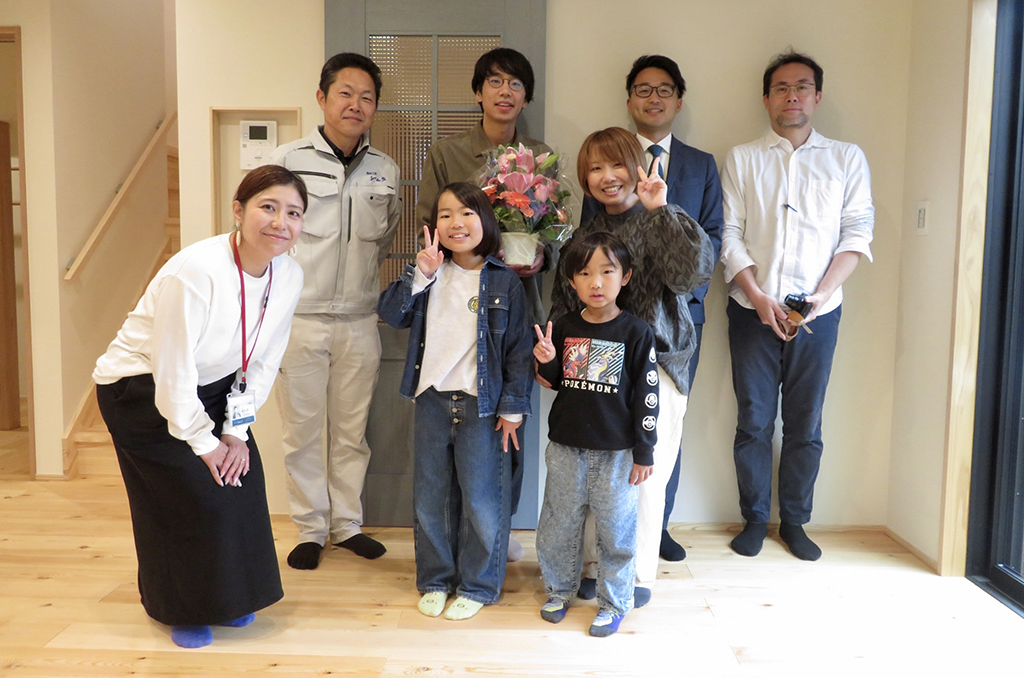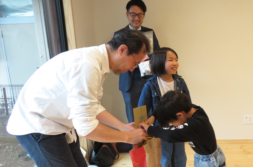 先日、Fさまご家族の新居のお引き渡し式を行いました。