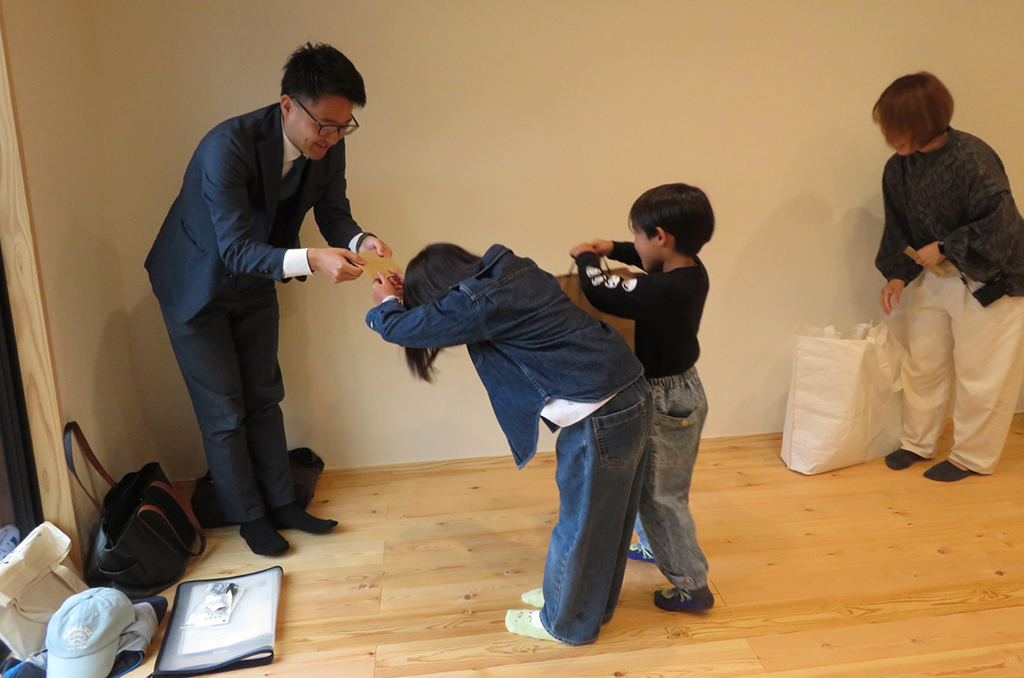 施主さまご家族からは、スタッフ一人ひとりに丁寧なお手紙と贈り物をご用意いただき、なんと、打ち合わせ中にお子さまをお預かりしていた託児スタッフにまで…!