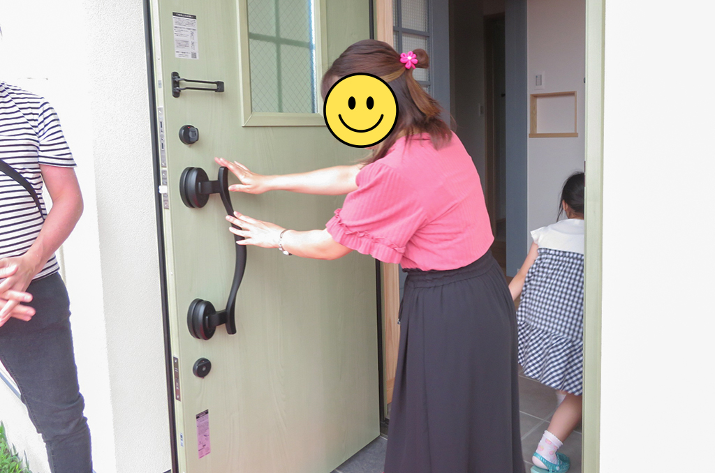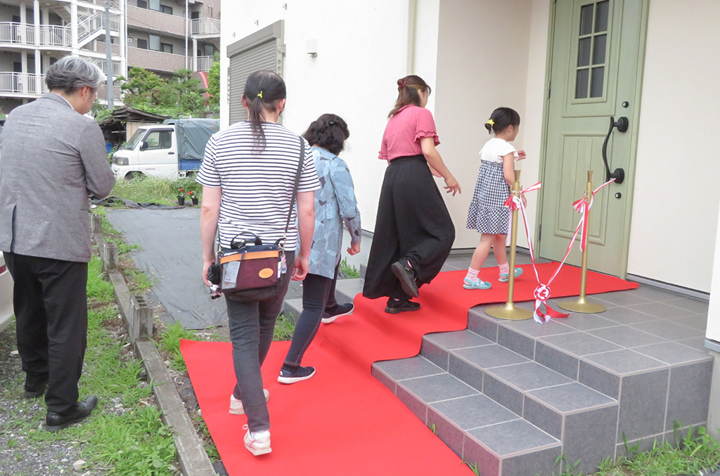 テープカットの次は新居の鍵をお渡しして、いよいよ玄関のドアをオープン!