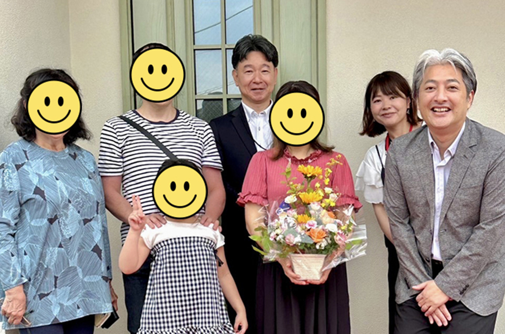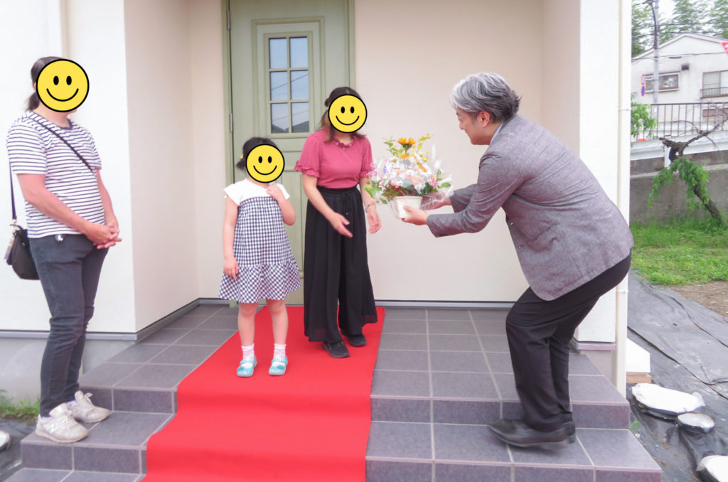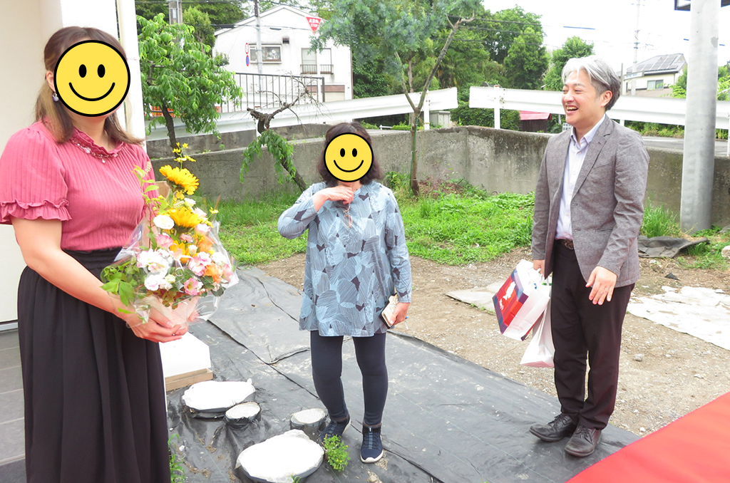 最後に営業の原田より施主様へお花を贈らせていただきました。