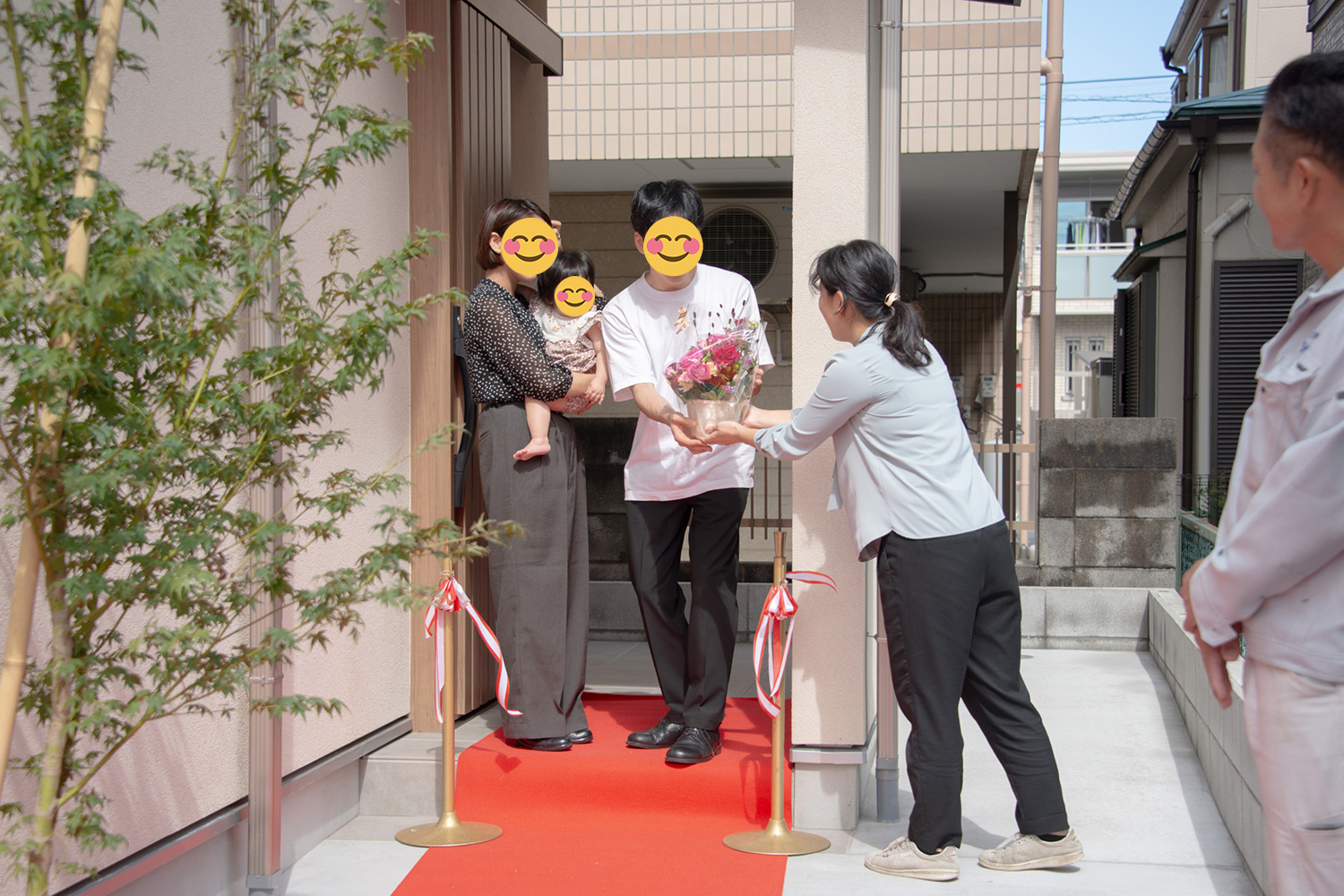 設計担当の市丸より花束を贈呈し、施主様からも一言頂戴し、