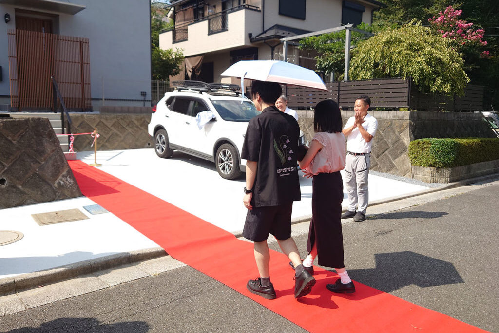 まだまだ夏らしいスカッと晴れた日差しの中、M様邸のお引き渡し式を行いました☀️