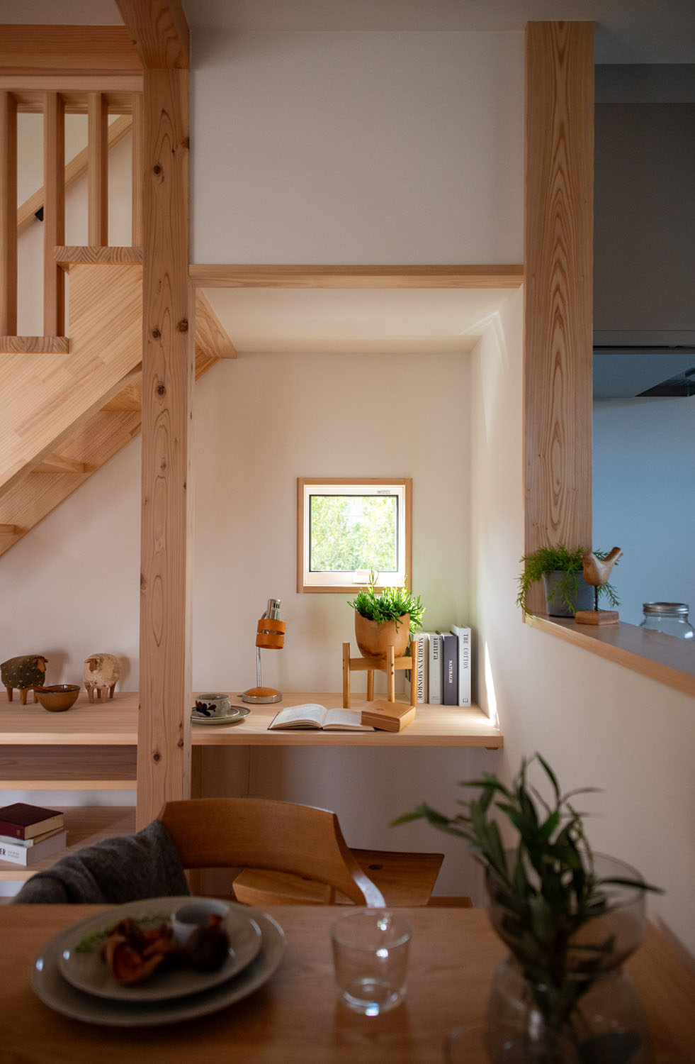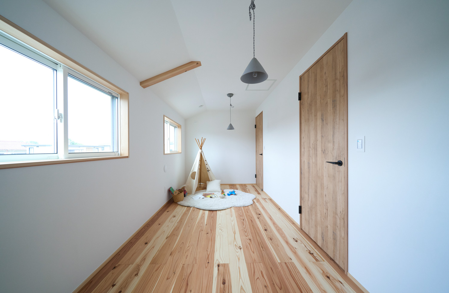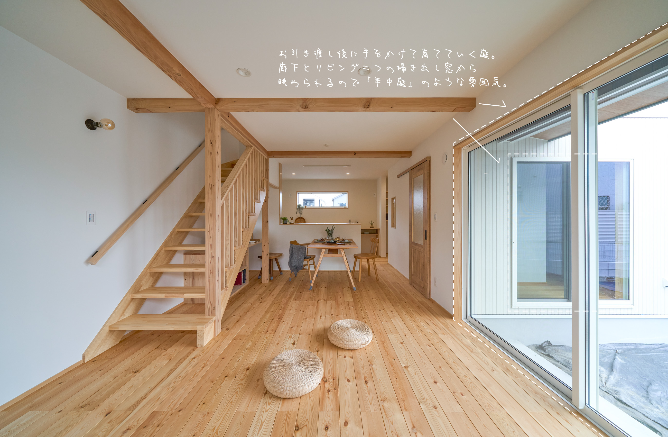 開催日 10月25日(土)・26日(日) 開催時間 10:00〜 / 14:00〜 「お庭を眺められるリビングと、家事動線の良い暮らしやすい家を」とご希望された建主様。旗竿地をうまく活かした建物配置により、リビングの大きな掃き出し窓からは奥行きのある庭の景色を楽しめます。また、玄関から家事室・ファミリークローゼット・キッチン・パントリーへと回遊できる、動きやすい家事動線を実現しました。リビング横には家族でシェアできるワークスペースを、さらに集中して仕事に取り組める書斎も設けています。加えて、可変できる子供部屋や細やかに計画された収納、すっきりと隠せるロールスクリーン用の埋め込みボックスなど、日々の暮らしを心地よく整える工夫を随所に凝らしました。 こんな方におすすめのお住まい ワークスペースや書斎をお考えの方 木の質感や自然素材にこだわりたい方 回遊動線や家事効率を重視する共働き世帯の方 将来的な家族の変化に対応できる住まいをお考えの方 自分たちの生活にフィットする収納や設備にこだわりたい方 リビングからの景色にもこだわりたいとお考えの方 無駄のないシンプル設計をご希望の方 見どころポイント 土地の条件を上手に活かしたリビングの設計 将来的に2部屋に可変できる子供部屋 動きやすいぐるっと回遊できる家事動線 洗濯家事がスムーズに、一階のファミリークローゼット 衣類が見やすく取り出しやすい寝室クローゼット 家族でシェアできるリビングワークスペース 集中できる「こもれる書斎」スペース 目線と風景を考慮したピクチャーウィンドウ ロールスクリーンのスッキリ目隠し収納ボックス 性能値について ■UA値(外皮平均熱貫流率)/0.41 W/㎡・K ■C値/0.44 ㎠/㎡ 見どころPick Up 半中庭を楽しむ間取り 「プールやガーデニングなどを楽しめる中庭のような庭が欲しい」という建主様。L字型の配置で室内空間の広さも確保した「半中庭」のプランに。リビングの大きな掃き出し窓と、廊下の窓からお庭を眺められます。 景色を切り取るピクチャーウィンドウ 近隣は緑豊かな住宅街。配置を工夫して、人の目線は遮りながらも美しい景色を切り取る大小の窓を設置。リビングを心地よくする工夫の一つ。 ぐるっと回遊できる家事動線 玄関からぐるっと回遊できる家事動線。玄関→ファミクロ→家事室(兼脱衣所)→パントリー→キッチン→リビング→廊下→玄関と、動線上に家事設備も充実。 家事室にはガス乾燥機を設置予定。1Fにファミリークローゼットを設けたことで洗濯後の服を仕舞うのも楽ちん。お庭にもすぐに出られるので、外干しでも動線がスムーズ。 完成見学会ご予約フォーム 開催日時 10月25日(土)・26日(日) 10:00〜 / 14:00〜 開催場所 健幸工房 シムラ 最寄駅青梅線小作駅 徒歩19分 集合場所 【健幸工房シムラ】にご来店いただき、個別にご案内いたします。 完全予約制となります。 お電話【0428-33-9555】または【予約フォーム】にてお申し込み下さい。 ※)設計打ち合わせ中のお客様は、設計担当者にお問い合わせください。 ※)お客様の大切なお家をお借りしての見学会です。 抱っこの赤ちゃん以外の、小学生以下のお子様は無料託児サービスをご利用いただくか、ご家族交代でのご見学をお願いいたします。 託児サービスは満員となることがございます。お早めにご予約ください。 託児サービス 無料予約制 『子供と一緒だとゆっくり見られない』『走り回って傷をつけないか心配』という声を受けて、シムラの見学会では無料託児サービスを実施!専任のシッターがお子様を責任持ってお預かりいたします。見学会ご予約の際にお申し込みください。 託児予約 予約フォームまたはお電話 託児場所 健幸工房シムラ / スタジオ棟2F あそび場 予約締切 託児のお申込みは見学希望日の2営業日前の15:00まで 予約時の注意 お子様のお名前・性別・年齢(月齢まで)をご記載ください。 アレルギーや持病、その他配慮が必要なお子様に関する情報も些細なことでも構いませんので必ずお知らせください。 ※託児をご希望の場合、お子様のお名前・性別・年齢(月齢まで)をお伝えください。 ※水分やオムツなど持参品にお名前をご記入の上、ひとまとめにしてお渡しください。 ※託児キャンセルの際は、ご連絡をお願いいたします。 ※アレルギーや持病、その他配慮が必要なお子様に関する情報も些細なことでも構いませんので必ずお知らせください。 ※託児サービスは満員となることがございます。お早めにご予約ください。 完成見学会ご予約フォーム Concept シムラが目指すのは「健やかで幸せに暮らせる家。」 こだわりの自然素材と木のぬくもりに包まれて 家族が生きていく。育っていく。身近な暮らしづくりをお手伝いさせて頂けたなら、私たちも幸せです。 シムラの家づくりへ