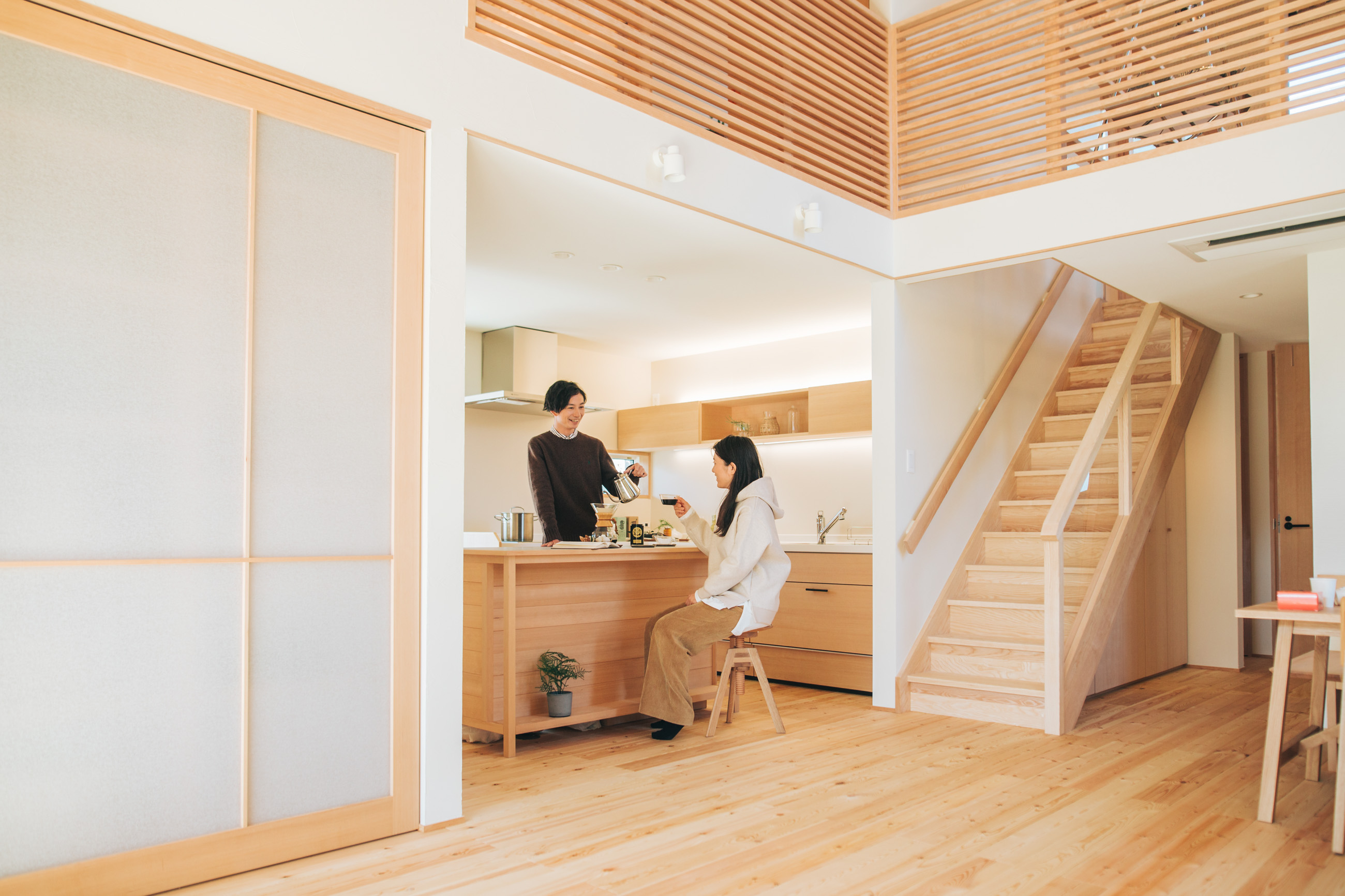 開催日 2026年2月7日(土)・8日(日) 開催時間 10:00〜 / 13:00〜 / 15:00〜 2月の閉館を前に、モデルハウス「とと」の最終見学会を開催します。建築から約5年。新築時の美しさだけでなく、年月を重ねた無垢材の表情の変化や、暮らしを想定してつくられた設えをご覧いただける貴重な機会です。 大きな吹き抜けのあるリビングや、家中をやさしく温める薪ストーブ。1階で暮らしが完結し、2階には子育てに寄り添う空間をまとめた「平屋+α」の住まいは、家族の成長を見据えた住まい方の一つの答えです。 深い軒がもたらす季節との付き合い方、造作家具や木のキッチンの使い勝手、そして植栽と建物が一体となった外観の佇まい。時を経て美しく変化する「自然素材の家」を、ぜひ現地で体感してください。 こんな方におすすめのお住まい 平屋を検討中の方 木の質感や自然素材にこだわりたい方 自分たちの生活にフィットする収納や造作家具にこだわりたい方 間取りに可変性を持たせたい方 災害時でも対応できる住まいをお考えの方 アウトドアが趣味の方 薪ストーブのある暮らしをお考えの方 見どころポイント 1階で暮らしが完結する間取り 吹き抜けの開放感 オリジナルの造作家具や建具 セミオーダーの木のキッチン 玄関からの回遊動線 家中を温める薪ストーブの快適さ 庭と一体となる外観デザイン 夏には日光を遮り、冬にはしっかり取り込める深い軒 災害時にも安心な住まいの作り方 完成見学会ご予約フォーム 開催日時 2026年2月7日(土)・8日(日) 10:00〜 / 13:00〜 / 15:00〜 開催場所 東京都あきる野市留原 781-11 最寄駅JR五日市線/武蔵五日市駅 徒歩9分 集合場所 【モデルハウスとと】に直接ご来店ください。個別にご案内いたします。 完全予約制となります。 お電話【0428-33-9555】または【予約フォーム】にてお申し込み下さい。 ※)設計打ち合わせ中のお客様は、設計担当者にお問い合わせください。 完成見学会ご予約フォーム Concept シムラが目指すのは「健やかで幸せに暮らせる家。」 こだわりの自然素材と木のぬくもりに包まれて 家族が生きていく。育っていく。身近な暮らしづくりをお手伝いさせて頂けたなら、私たちも幸せです。 シムラの家づくりへ