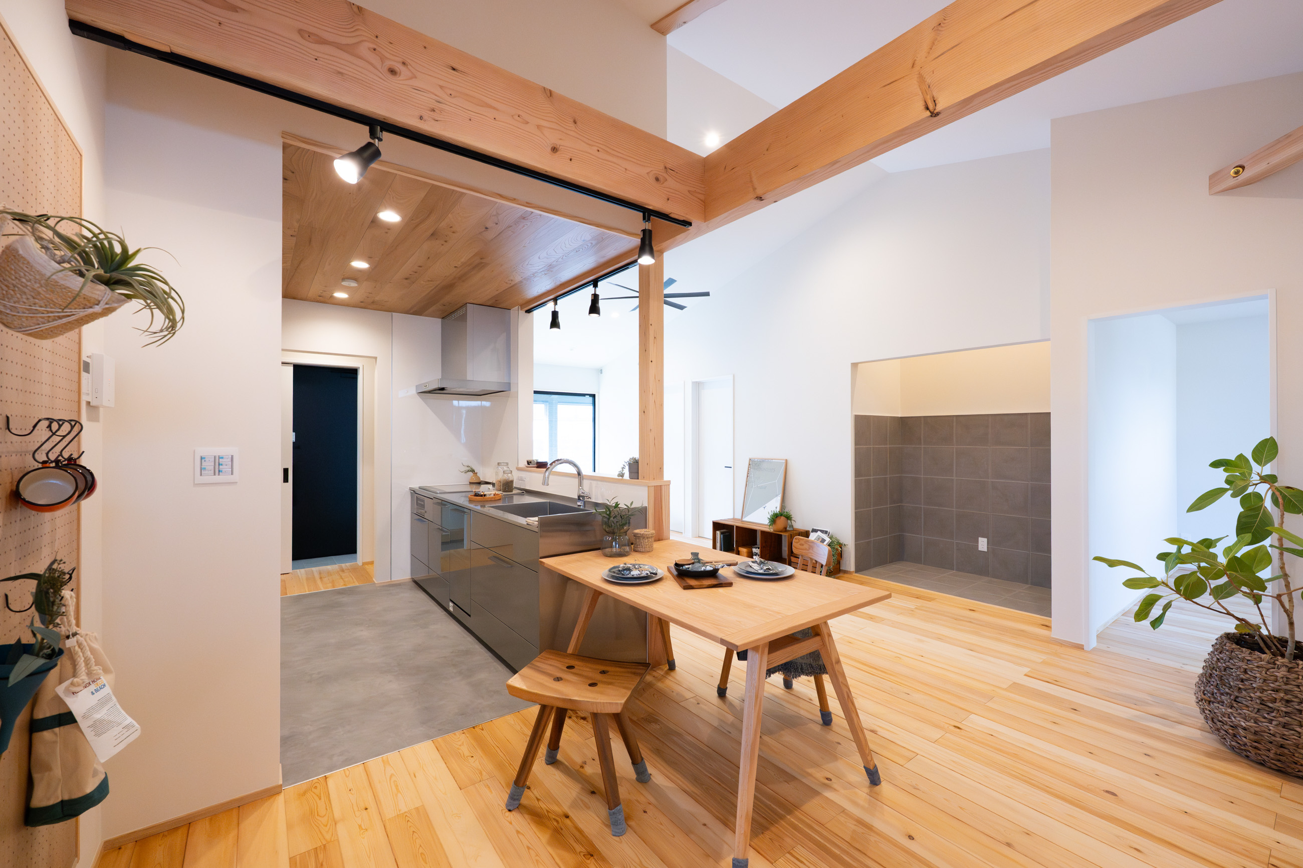 開催日 3月7日(土)・8日(日) 開催時間 10:00〜 / 14:00〜 自然に囲まれたのどかな土地で趣味を存分に楽しめる、 将来的にも暮らしやすい住まいをご希望された建主様。 キャンプをはじめ、バイクや自転車といった趣味を 日常の中で無理なく楽しめるよう、 広い土間と大きな軒を備えた平屋を選ばれました。 南側に広々設けた土間は、 アウトドア用品のメンテナンスや整理はもちろん、 リビングとゆるやかにつながる“もうひとつの居場所”として活躍します。 玄関からパントリーを通ってキッチンへ抜けられる動線や、 大容量の共有クローゼット、 リビングを起点にぐるりと回れる回遊動線など、 洗う・干す・畳むがここだけで完結する洗濯家事室、 日々の動きを考えた、ストレスの少ない間取りも見どころです。 リビングには空間全体を温めてくれる ペレットストーブを設置。 趣味と日常がゆるやかにつながる、自然の中でのびのびと暮らすための平屋の住まい。 ぜひ現地でご体感ください。 【こんな方にご見学いただきたいお住まいです!】 平屋を検討中の方 木の質感や自然素材にこだわりたい方 自分たちの生活にフィットする収納や造作家具にこだわりたい方 動線や間取りにこだわりたい方 アウトドアが趣味の方 薪ストーブやペレットストーブのある暮らしをお考えの方 土地探しから相談されたい方 【見どころポイント】 東西に長く伸びる、リビング土間のある平屋 雨の日も安心な、大きな軒のある玄関まわり 玄関→パントリー→キッチンのスムーズな家事動線 リビングを起点にぐるっと回れる回遊動線 家族で使える大容量のウォークインクローゼット 広々とした洗濯家事室 アウトドア小物をさっと掛けられる有孔ボード ペレットストーブのある、あたたかいリビング 完成見学会ご予約フォーム 開催日時 3月7日(土)・8日(日) 10:00〜 / 14:00〜 開催場所 青梅市/お客様邸 集合場所 【健幸工房シムラ】にご来店いただき、個別にご案内いたします。 完全予約制となります。 お電話【0428-33-9555】または【予約フォーム】にてお申し込み下さい。 ※)設計打ち合わせ中のお客様は、設計担当者にお問い合わせください。 ※)お客様の大切なお家をお借りしての見学会です。抱っこの赤ちゃん以外の小学生以下のお子様は、無料託児サービスをご利用いただくか、ご家族交代でのご見学をお願いいたします。 ※)託児サービスは満員となることがございます。お早めにご予約ください。 託児サービス 無料予約制 『子供と一緒だとゆっくり見られない』『走り回って傷をつけないか心配』という声を受けて、シムラの見学会では無料託児サービスを実施!専任のシッターがお子様を責任持ってお預かりいたします。見学会ご予約の際にお申し込みください。 託児予約 予約フォームまたはお電話 託児場所 健幸工房シムラ / スタジオ棟2F あそび場 予約締切 託児のお申込みは見学希望日の2営業日前の15:00まで 予約時の注意 お子様のお名前・性別・年齢(月齢まで)をご記載ください。 アレルギーや持病、その他配慮が必要なお子様に関する情報も些細なことでも構いませんので必ずお知らせください。 ※託児をご希望の場合、お子様のお名前・性別・年齢(月齢まで)をお伝えください。 ※水分やオムツなど持参品にお名前をご記入の上、ひとまとめにしてお渡しください。 ※託児キャンセルの際は、ご連絡をお願いいたします。 ※アレルギーや持病、その他配慮が必要なお子様に関する情報も些細なことでも構いませんので必ずお知らせください。 ※託児サービスは満員となることがございます。お早めにご予約ください。 完成見学会ご予約フォーム Concept シムラが目指すのは「健やかで幸せに暮らせる家。」 こだわりの自然素材と木のぬくもりに包まれて 家族が生きていく。育っていく。身近な暮らしづくりをお手伝いさせて頂けたなら、私たちも幸せです。 シムラの家づくりへ
