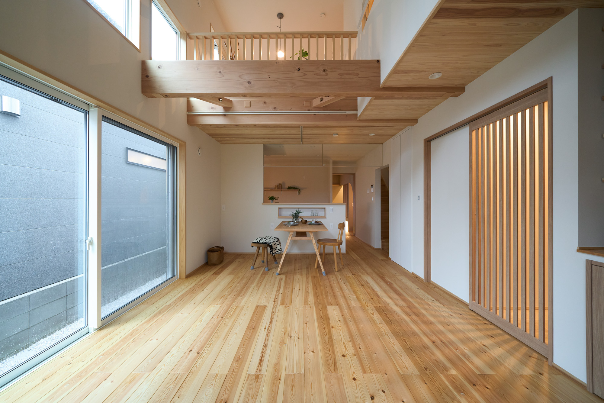 開催日 9月27日(土)・28日(日) 開催時間 10:00〜 / 14:00〜 自然素材の心地よさと、和の趣を取り入れたモダンな住まいをご希望された建主様。モデルハウス「とと」をご覧になり、将来を見越して暮らしやすい“平屋+α”の間取りを採用されました。梁や天井の杉無垢板張りが映えるリビング、床の間とヌックを備えた和室、そしてスプーンカットの床のやさしい足触りなど、見どころが随所に散りばめられています。子供部屋として2部屋に可変できるファミリースペースやこもれる書斎など、家族の暮らし方やこれからの変化にも柔軟に対応できる、ずっと暮らしやすいお住まいが完成いたしました。 こんな方におすすめのお住まい 1階完結型の平屋のように暮らせる間取りを検討している方 木の質感や自然素材にこだわりたい方 回遊動線や家事効率を重視する共働き世帯の方 将来的な家族の変化に対応できる住まいをお考えの方 自分たちの生活にフィットする収納や設備にこだわりたい方 リモートワーク主体で書斎をつくりたい方 和室をお考えの方 見どころポイント 無垢のあらわし梁と天井の杉板張りなど心地よいリビング空間 造作デスクを備えたR壁のヌック 落ち着いた和室デザイン 将来的に2部屋に仕切れる、開放的なファミリースペース 出入りの際に便利な玄関の木製ベンチ 足裏に心地よいスプーンカット仕上げの床材 2方向へと続く快適な玄関からの動線 衣類が見やすく取り出しやすいクローゼット 集中できる「こもれる書斎」スペース 生活感を隠せるトイレの目隠し収納 開催日時 9月27日(土)・28日(日) 10:00〜 / 14:00〜 開催場所 最寄駅JR青梅線/小作駅徒歩19分 集合場所 【健幸工房シムラ】にご来店いただき、個別にご案内いたします。 完全予約制となります。 お電話【0428-33-9555】または【予約フォーム】にてお申し込み下さい。 ※)設計打ち合わせ中のお客様は、設計担当者にお問い合わせください。 ※)お客様の大切なお家をお借りしての見学会です。 抱っこの赤ちゃん以外の、小学生以下のお子様は無料託児サービスをご利用いただくか、ご家族交代でのご見学をお願いいたします。 託児サービスは満員となることがございます。お早めにご予約ください。 託児サービス 無料予約制 『子供と一緒だとゆっくり見られない』『走り回って傷をつけないか心配』という声を受けて、シムラの見学会では無料託児サービスを実施!専任のシッターがお子様を責任持ってお預かりいたします。見学会ご予約の際にお申し込みください。 託児予約 予約フォームまたはお電話 託児場所 健幸工房シムラ / スタジオ棟2F あそび場 予約締切 託児のお申込みは見学希望日の2営業日前の15:00まで 予約時の注意 お子様のお名前・性別・年齢(月齢まで)をご記載ください。 アレルギーや持病、その他配慮が必要なお子様に関する情報も些細なことでも構いませんので必ずお知らせください。 ※託児をご希望の場合、お子様のお名前・性別・年齢(月齢まで)をお伝えください。 ※水分やオムツなど持参品にお名前をご記入の上、ひとまとめにしてお渡しください。 ※託児キャンセルの際は、ご連絡をお願いいたします。 ※アレルギーや持病、その他配慮が必要なお子様に関する情報も些細なことでも構いませんので必ずお知らせください。 ※託児サービスは満員となることがございます。お早めにご予約ください。 Concept シムラが目指すのは「健やかで幸せに暮らせる家。」 こだわりの自然素材と木のぬくもりに包まれて 家族が生きていく。育っていく。身近な暮らしづくりをお手伝いさせて頂けたなら、私たちも幸せです。 シムラの家づくりへ