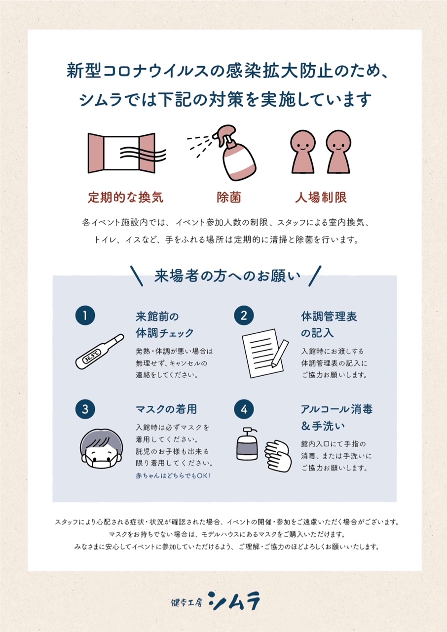 ※モデルハウス郷の家、古民家むく、kiccoでのイベントは通常通り開催予定です。