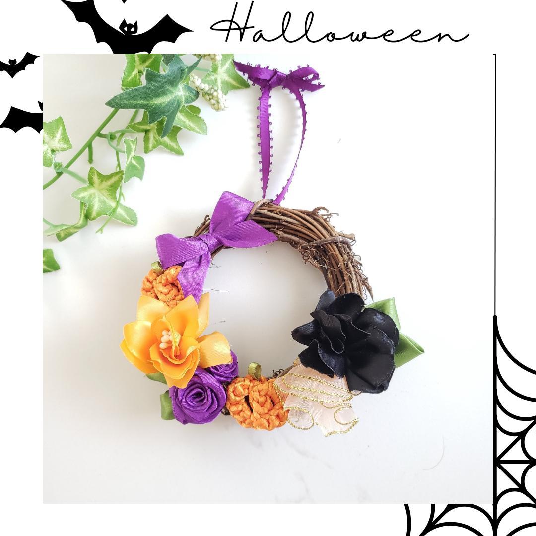 オレンジ、紫、黒のリボンでお花やモチーフを作って