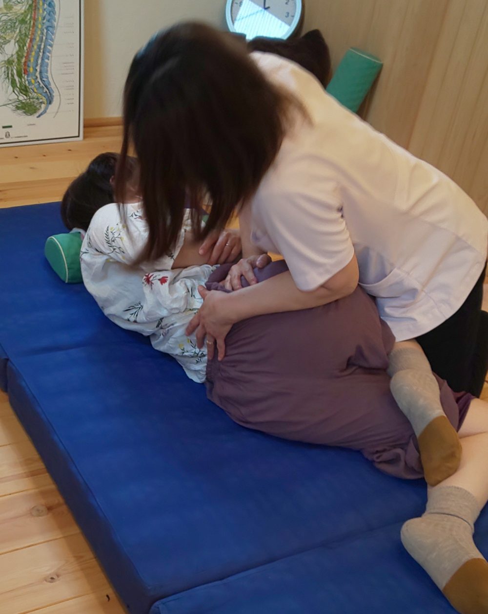 ☝骨盤のあたりをひねったりして整えています。