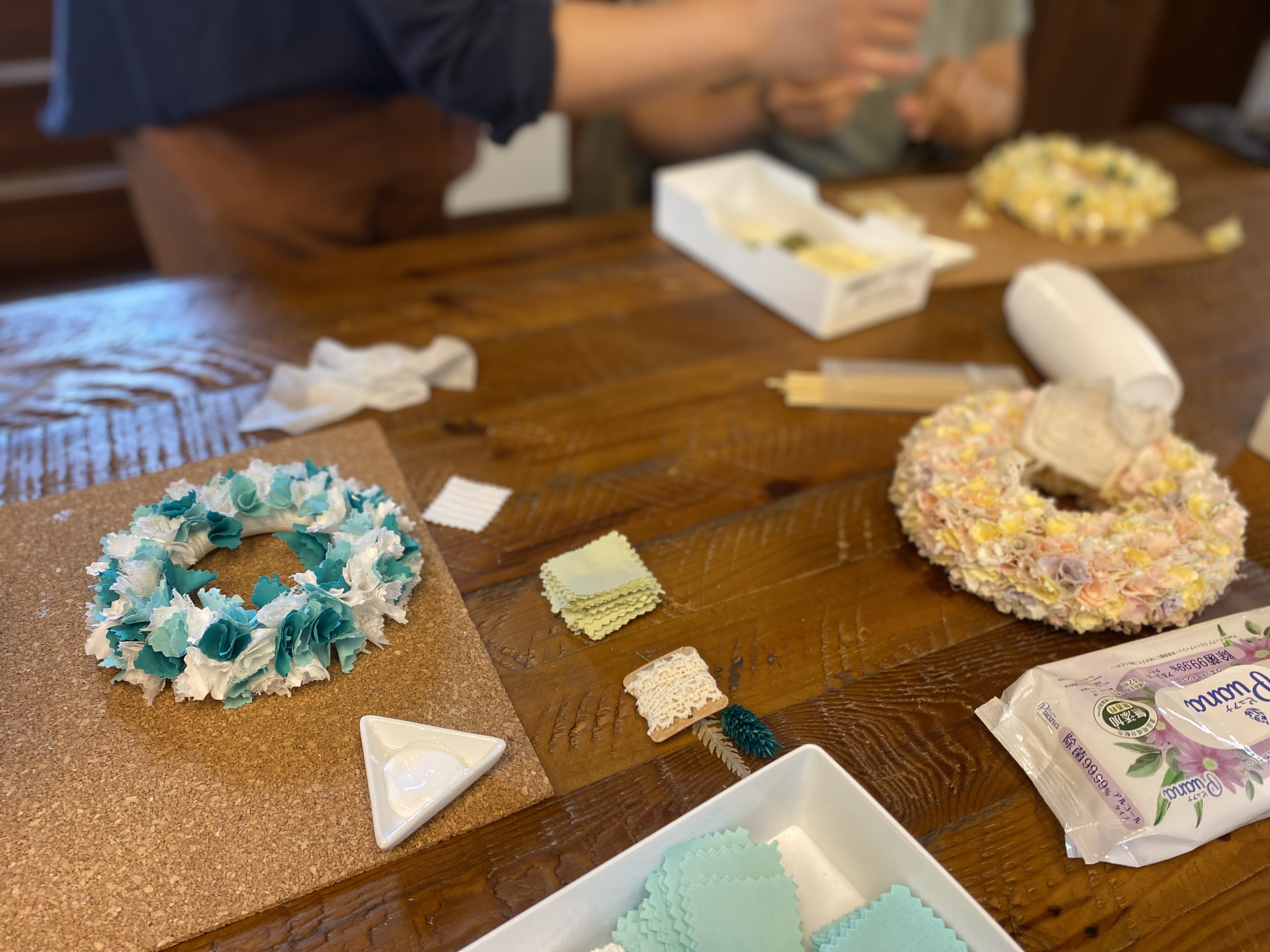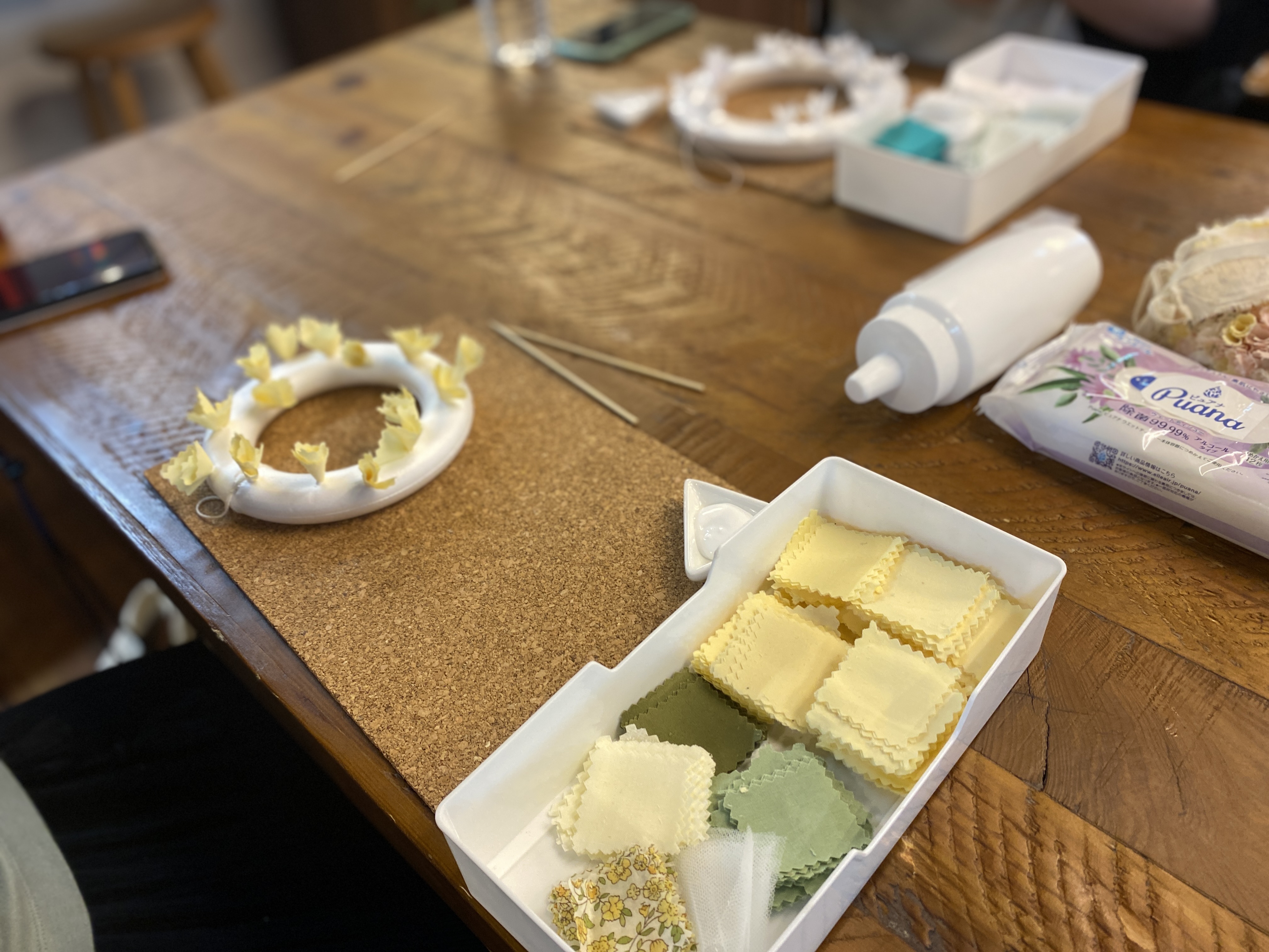 こんにちは(^^♪ 郷の家スタッフのあやのんです! 5/20(木)郷の家にて開催した 【布リースでいろあそび♪】のイベントのレポートをお届けします☆ 10:00-12:30までの2時間半のイベントです☆ とっても集中して作業するのであっという間に過ぎてしまいますっ