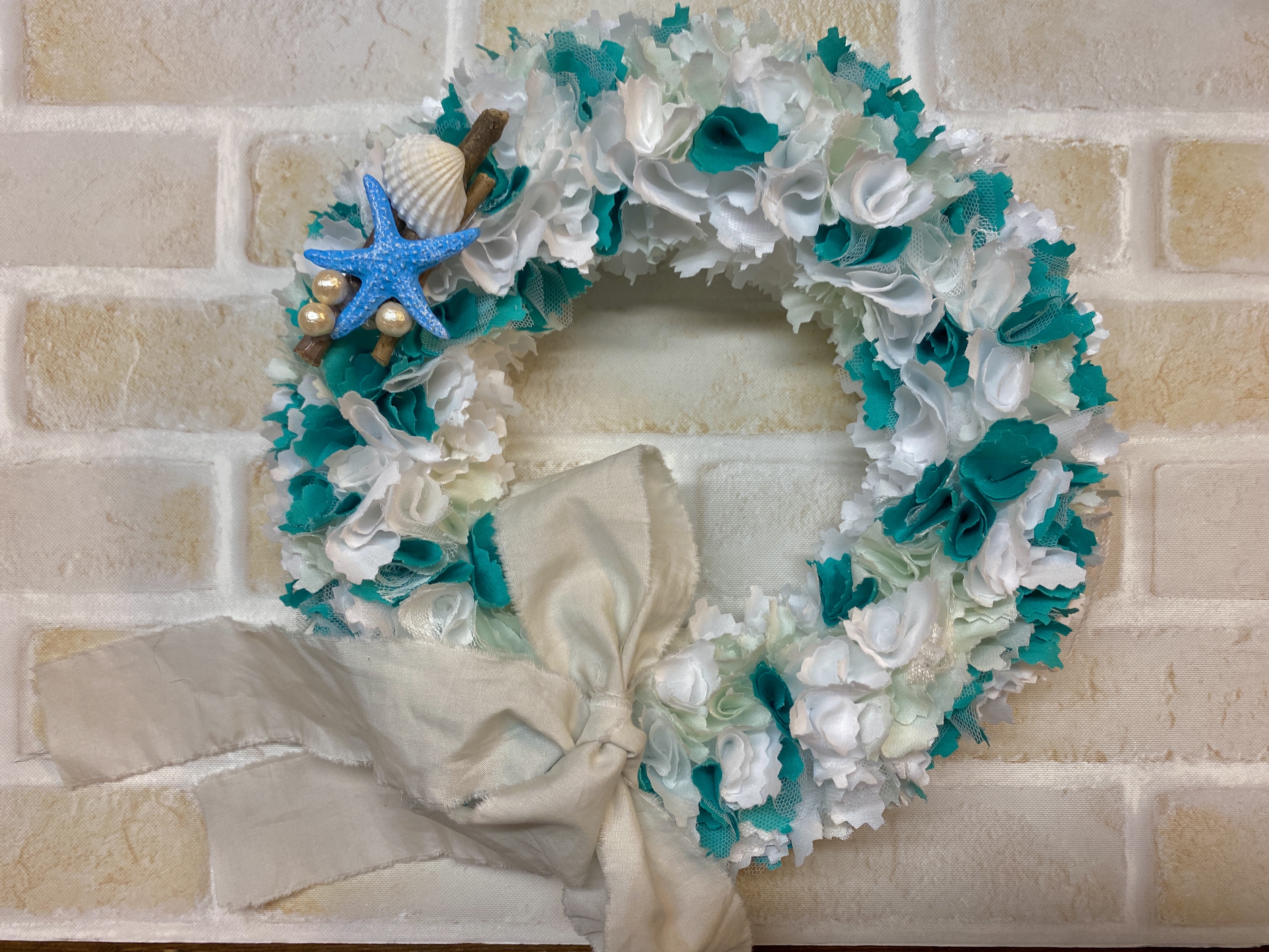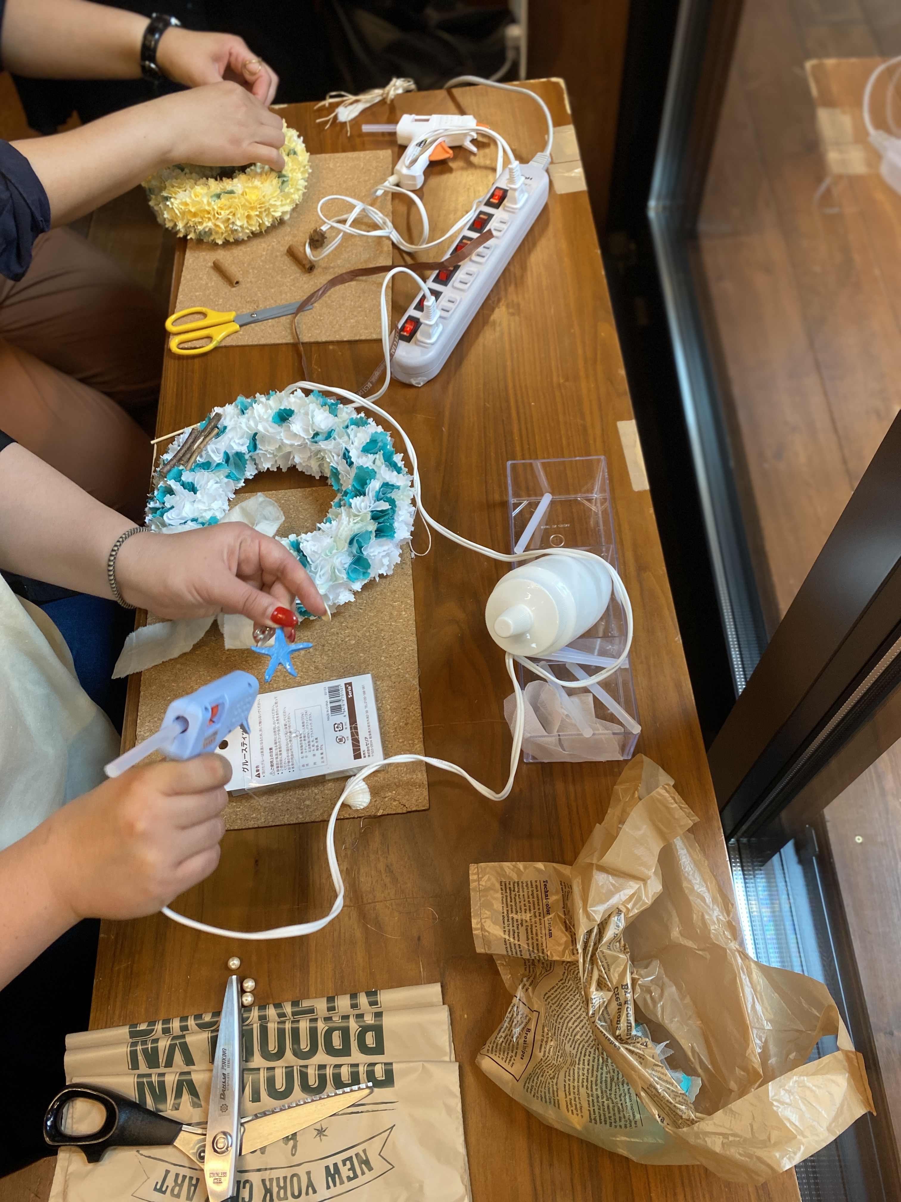 今回は夏らしく貝殻などもありました✨ 思いっきり夏らしいリースもいいですよねっ 色や小物で雰囲気全く変わるので、何個も作りたくなってしまいます( *´艸`)