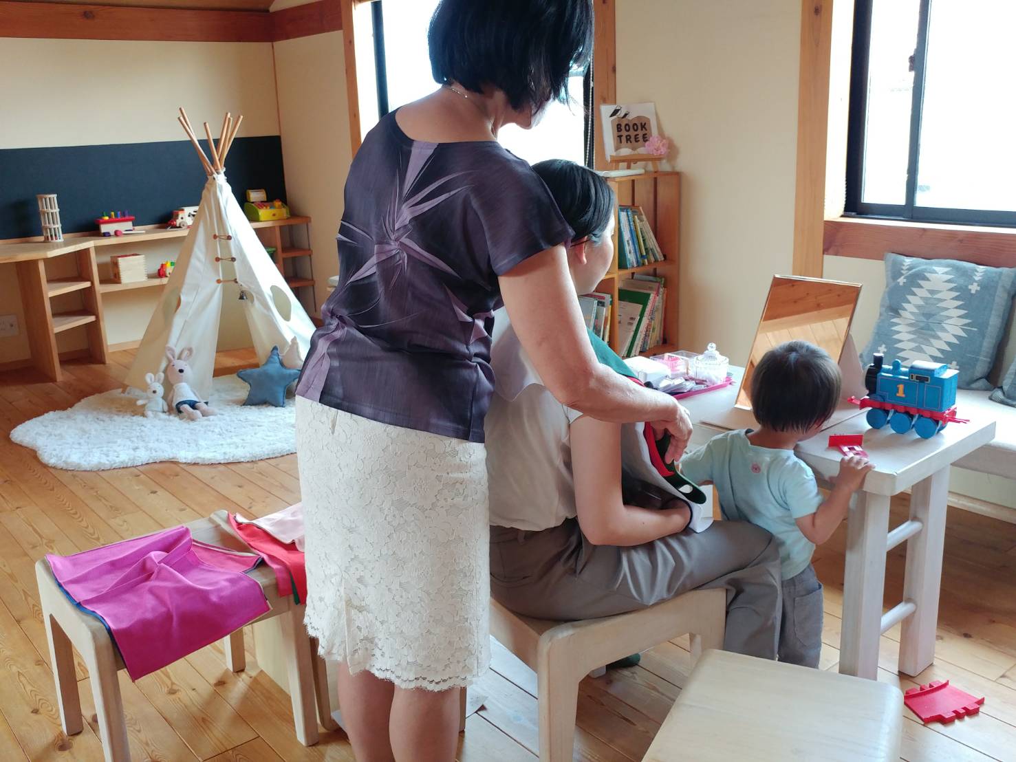 お子様は楽しそうにママのそばでおもちゃで遊んだり、