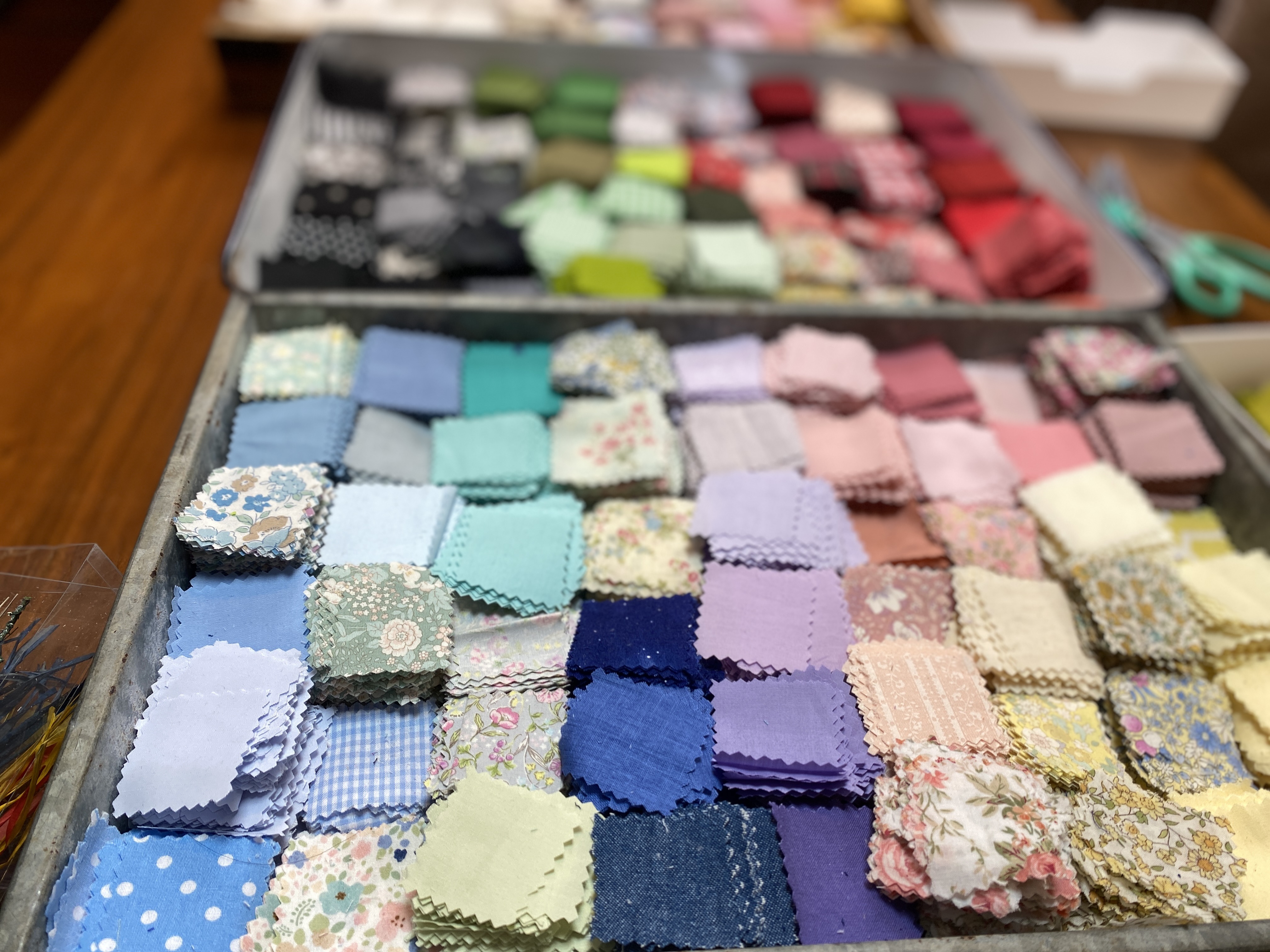 いつもこの布たちを見ると、自分だったらどの色のリースを作ろうかなと