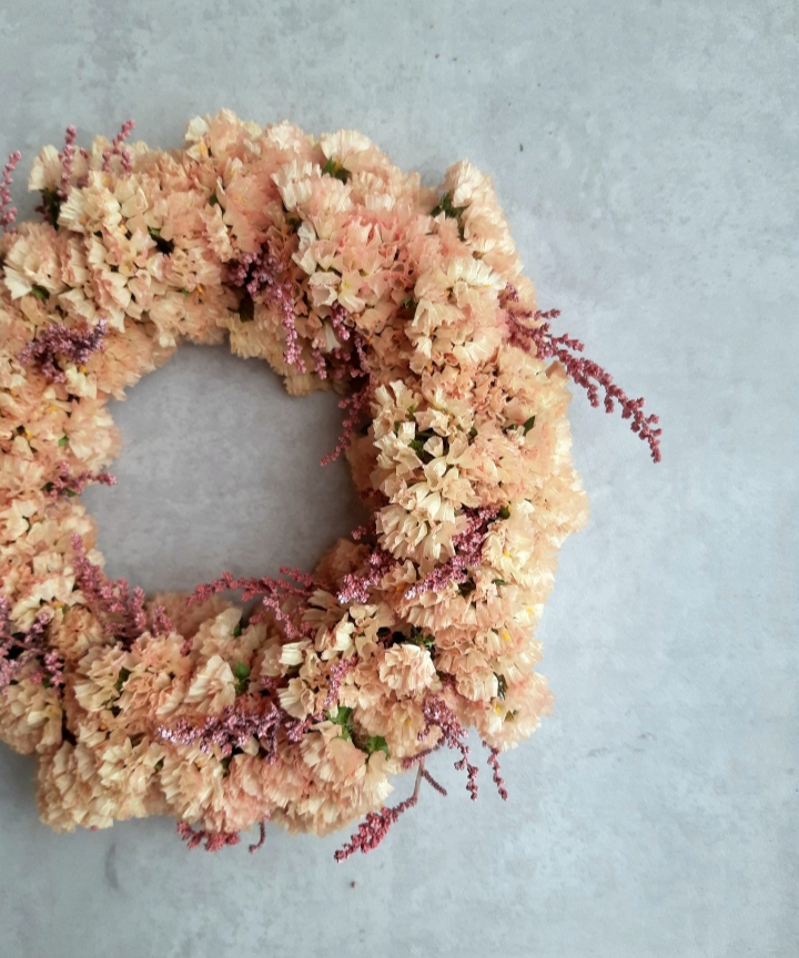 スターチスの色合いが素敵なリースづくりです(*’ω’*)