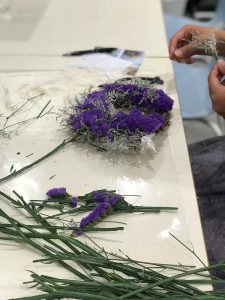 その2種類の花を上手に 土台の型に絡めていきます。
