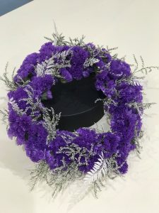 生花の濃い紫色のスターチスをメインに、