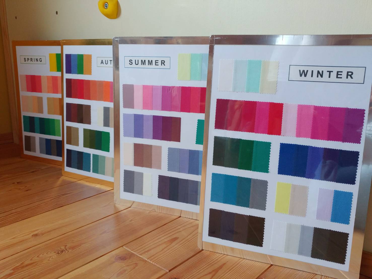 個別に色んな色の布をお顔の前にあてて、鏡の前で診断していきます。