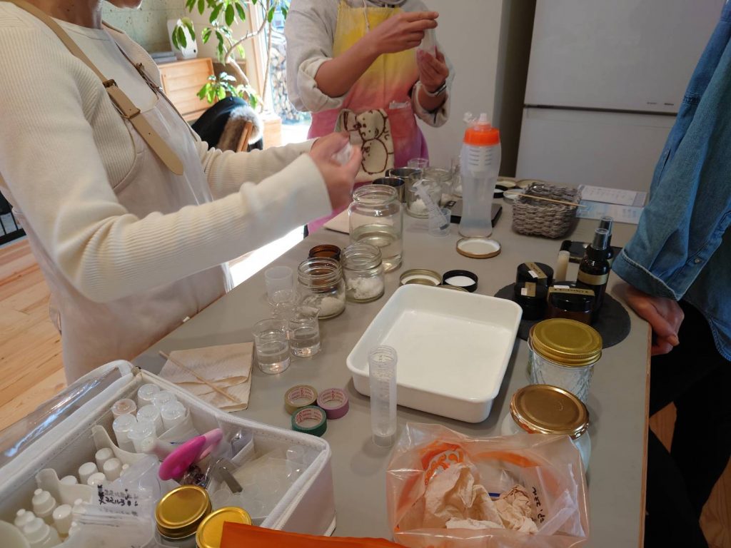 その効果で肌をよくしていくコスメを作るワークショップです。