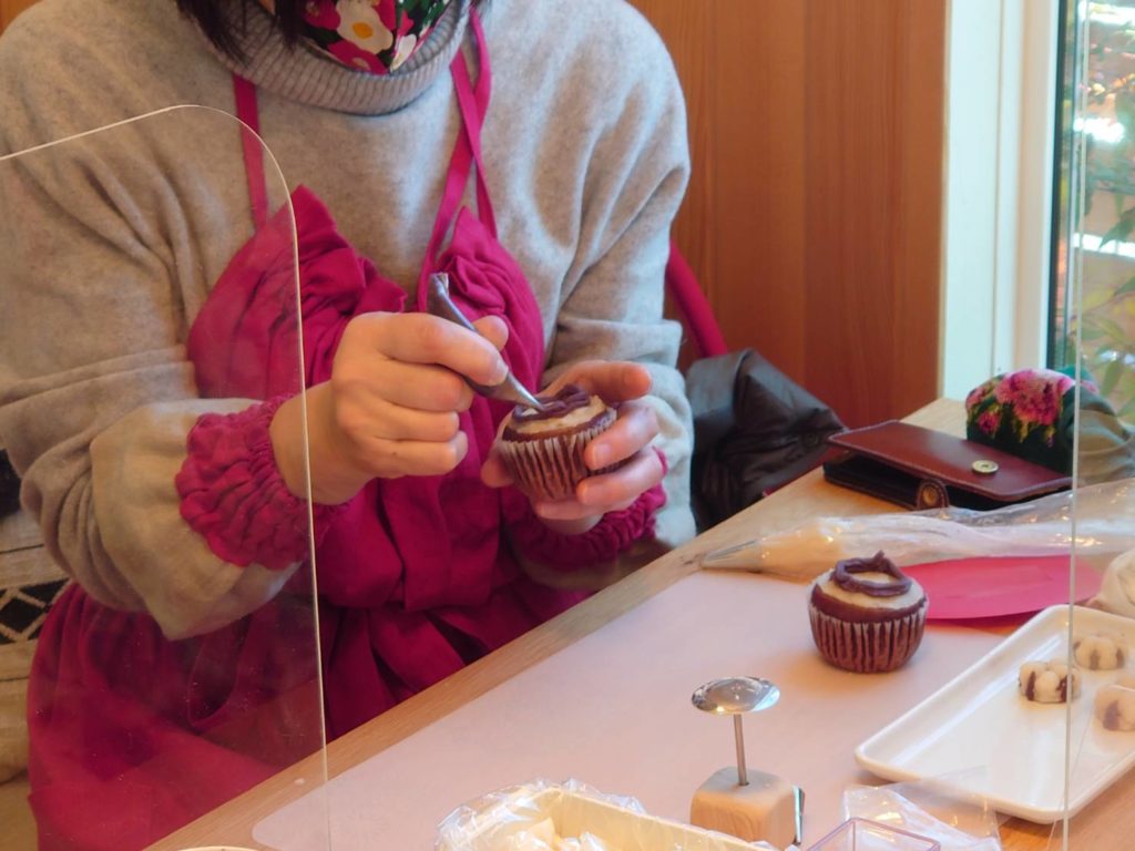 カップケーキを講師の松田先生自家製のあんでかわいくデコレーションしていく内容です。