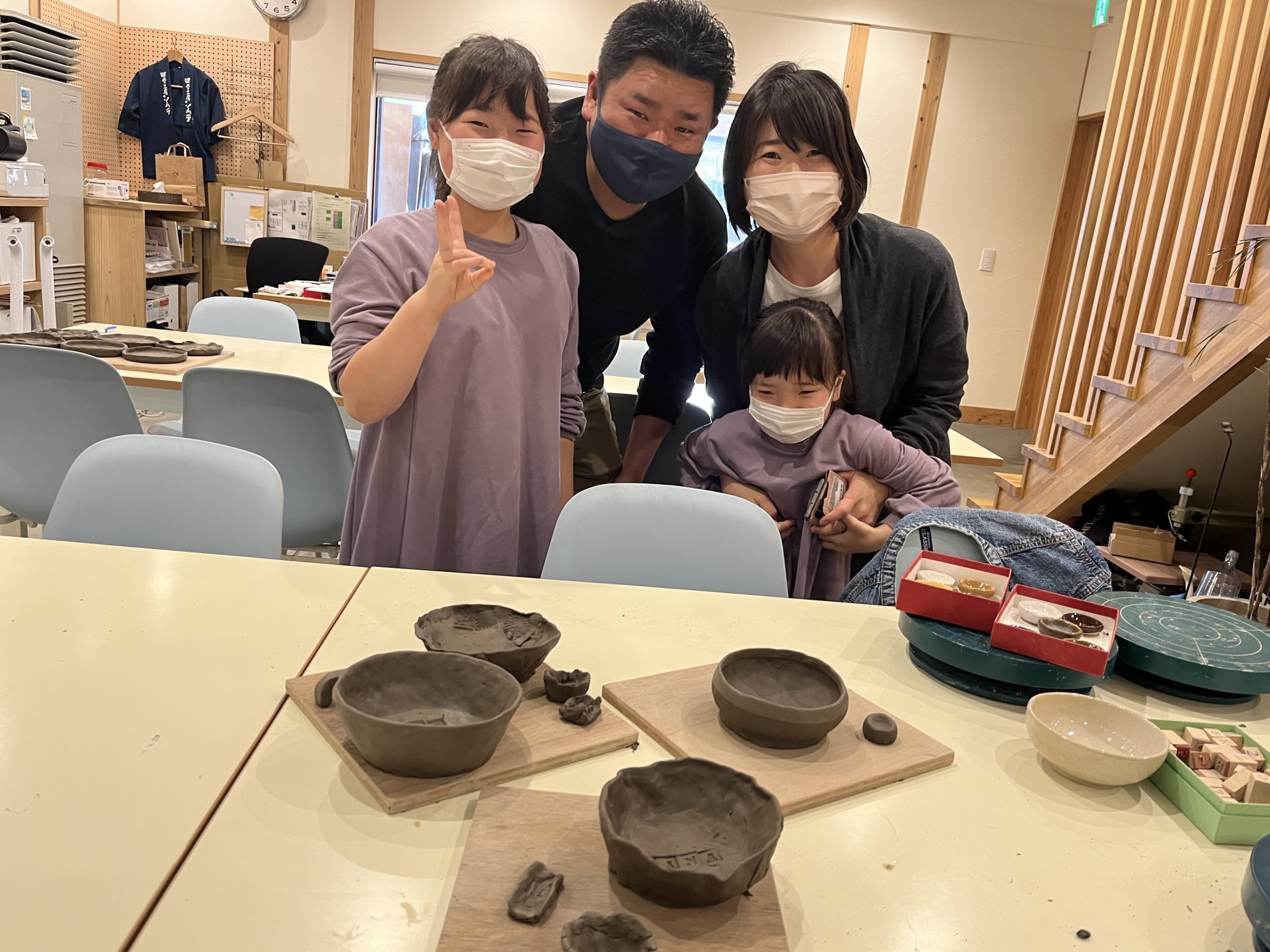 2回目のご参加のご家族は、手ろくろで器作りに挑戦していました!