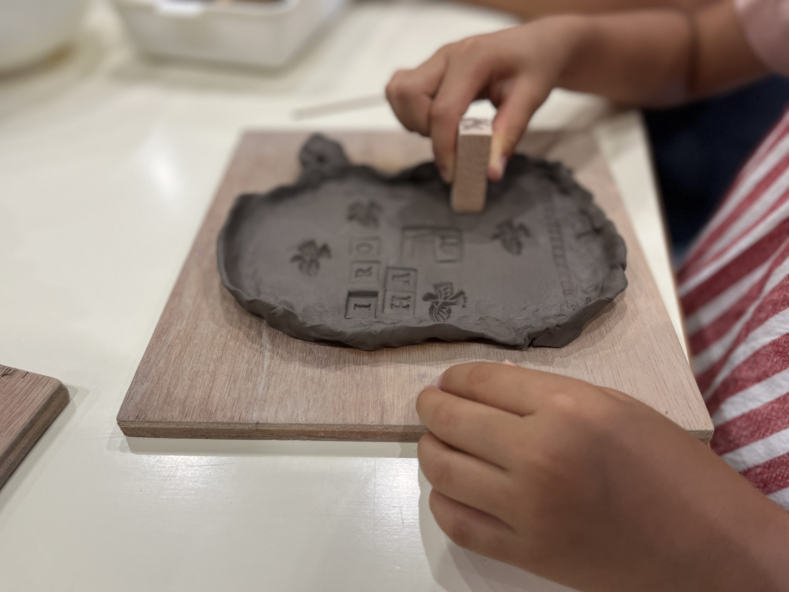 自由に好きなハンコを押してみたりして、オリジナルのお皿を作ります♪