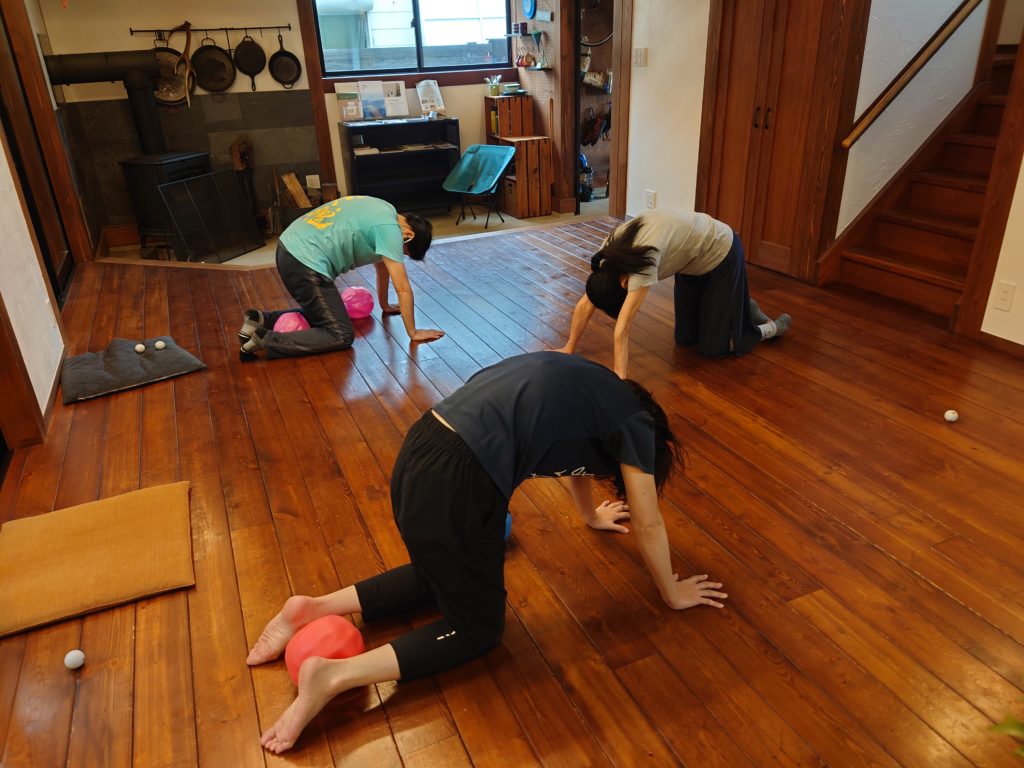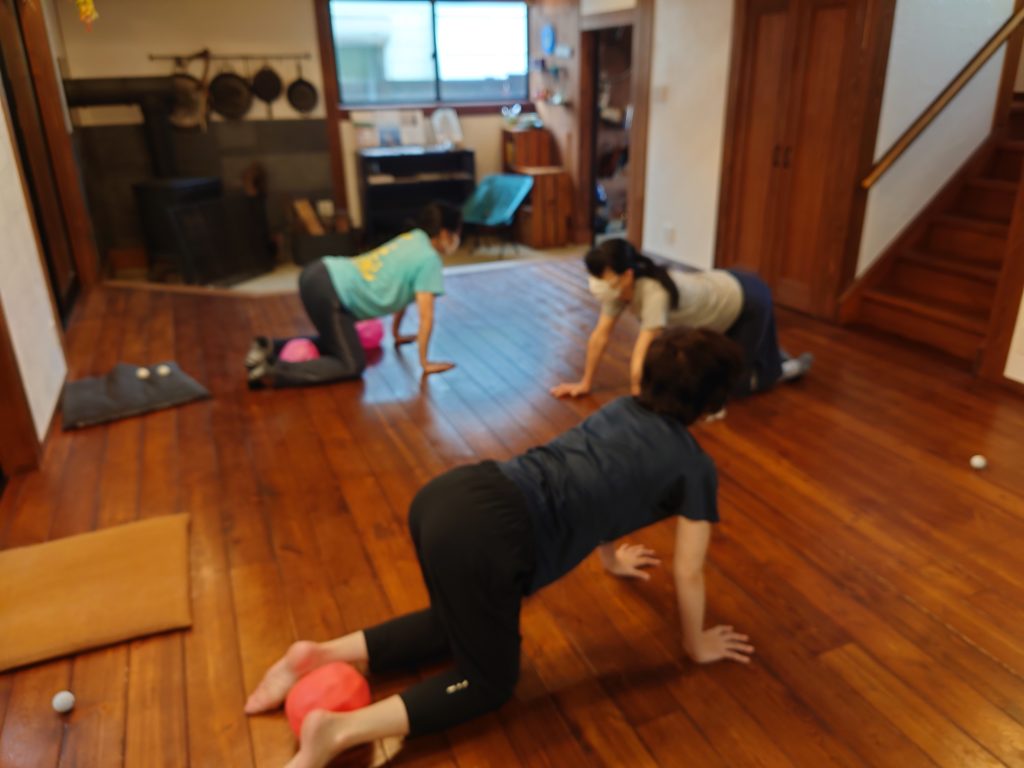 今日はストレッチ用のボールを使っての運動です(^o^)
