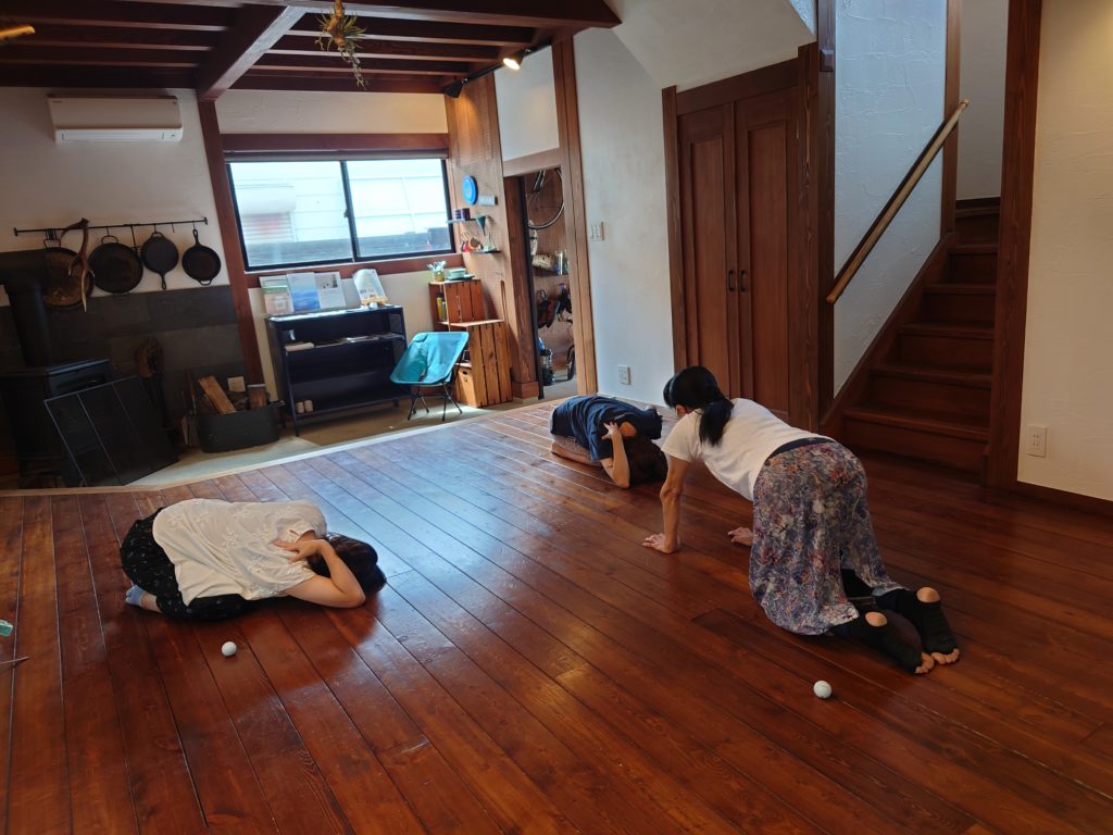 青梅こども未来の原愉美子先生によるストレッチの講座が開催されています。