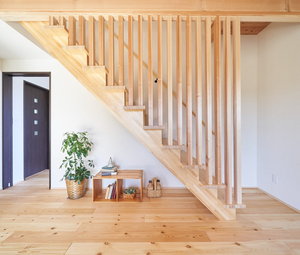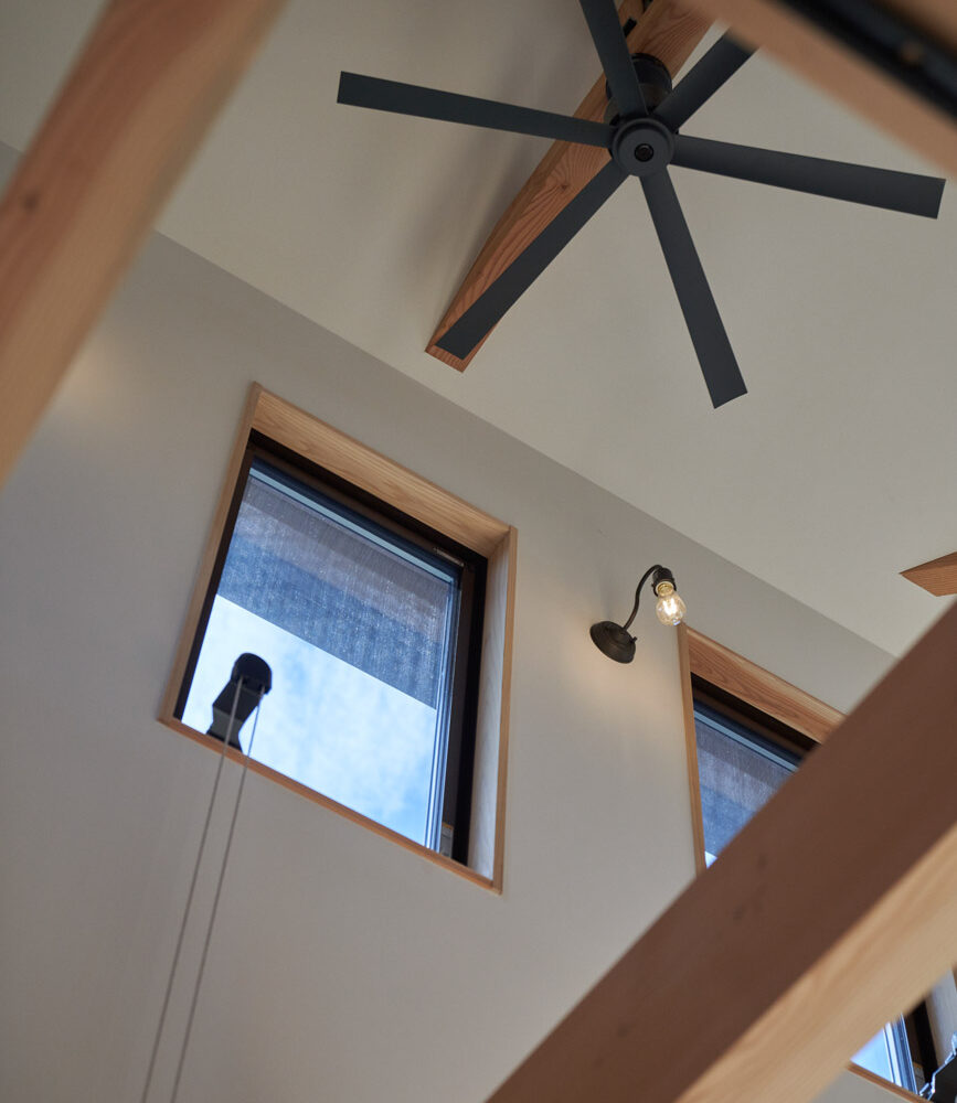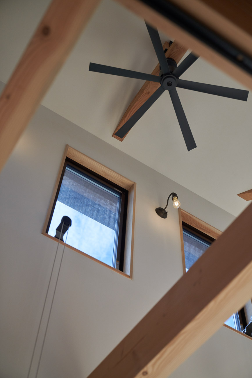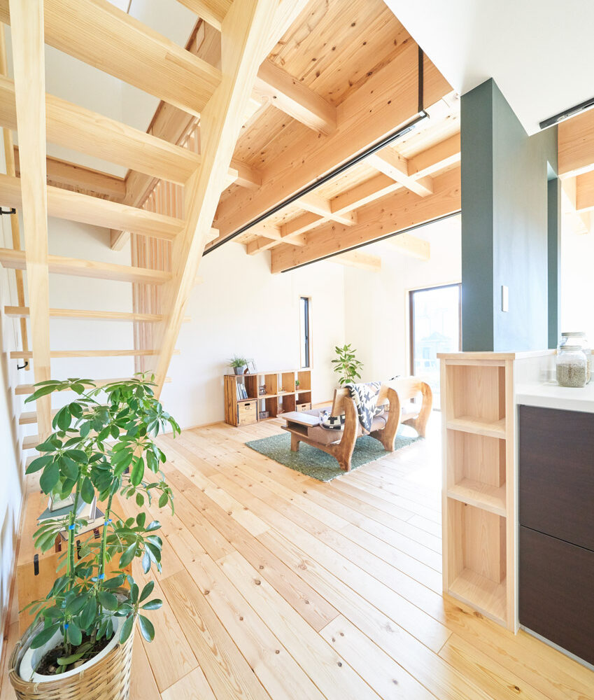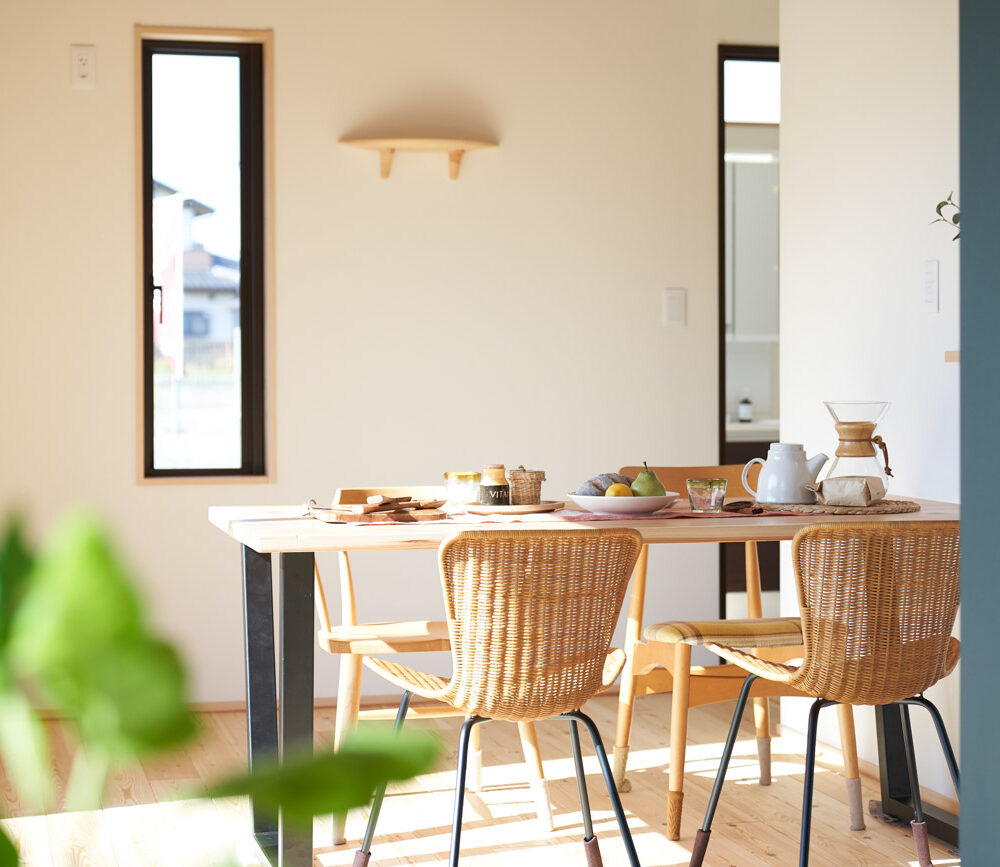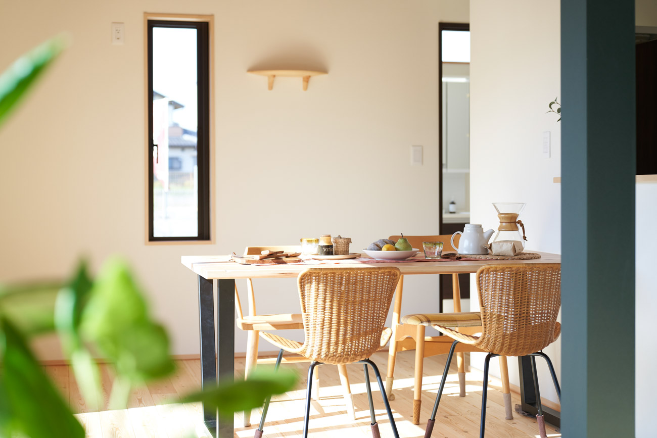 南側の開口部を多く設け、陽光をたっぷり取り込み、風の通りを邪魔することのないプランニングで室内はいつも心地よい空気に包まれます。吹き抜けで上下階はつながり、ランドラースペースや回遊動線で暮らしやすさは抜群。広さを体感できる開放的なお住まいです。 1F 広々明るい吹き抜けリビング 使いやすいランドリースペース 2F 吹抜けで繋がるファミリースペース
