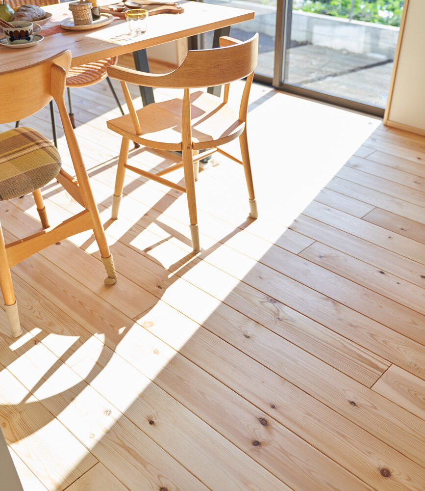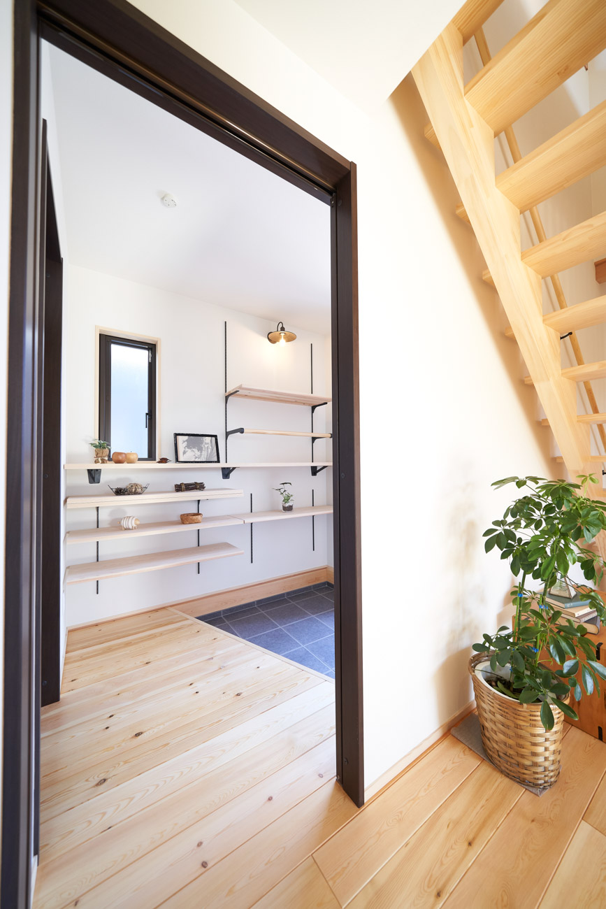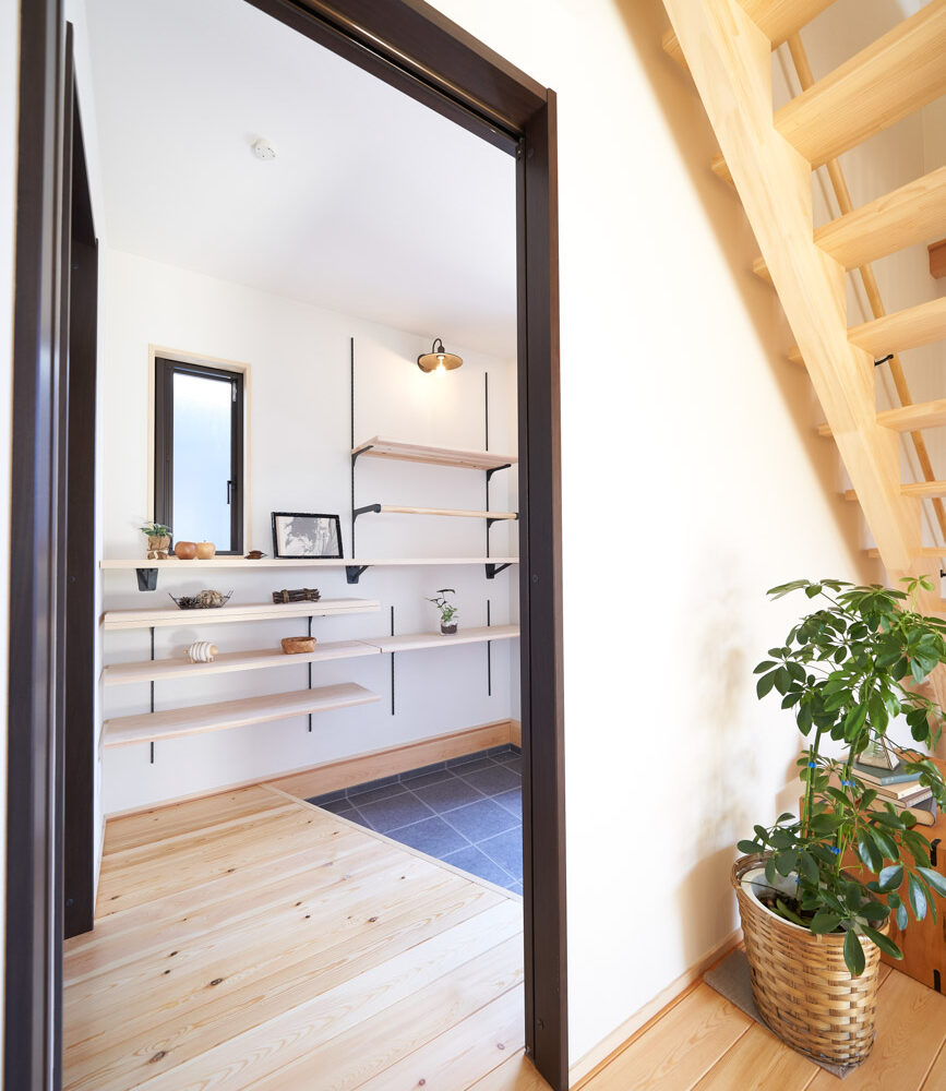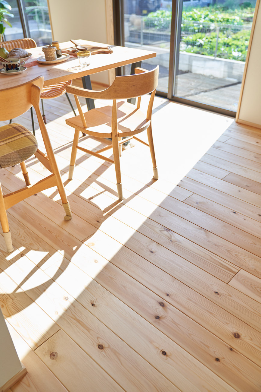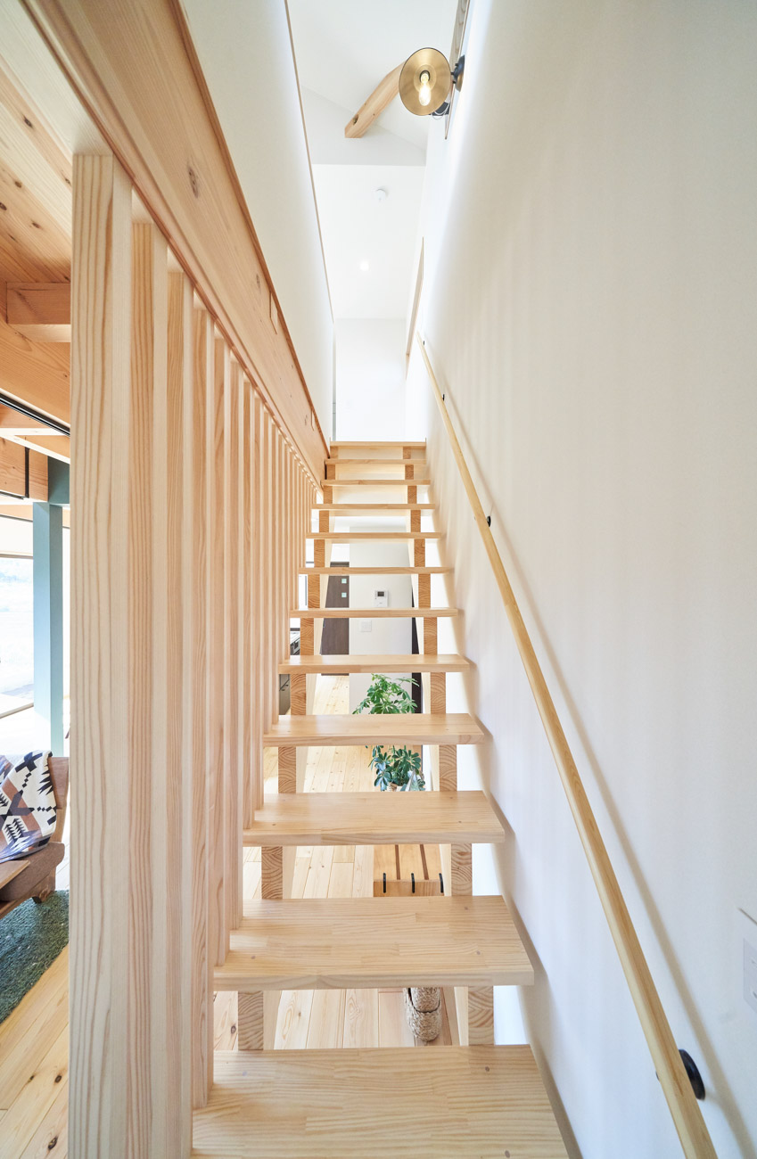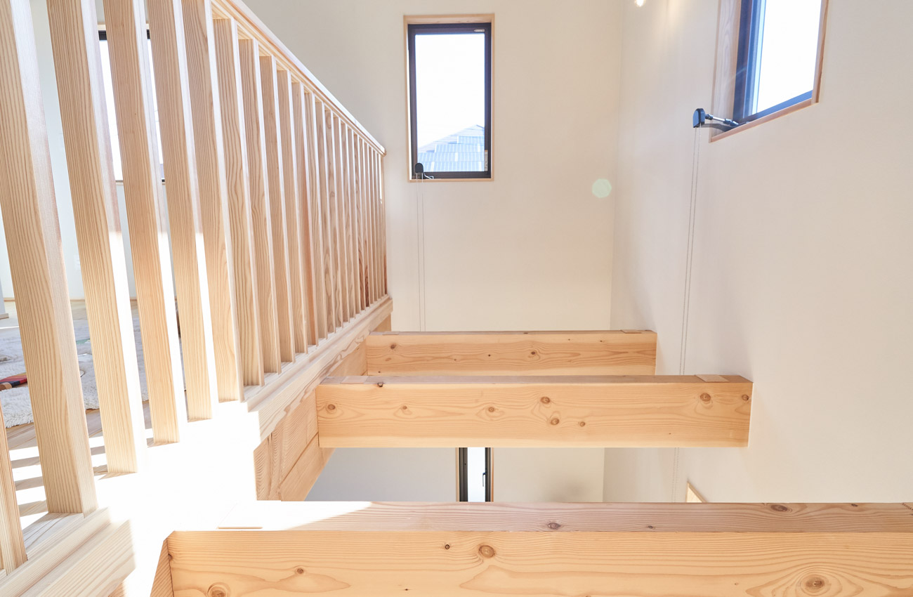 南側の開口部を多く設け、陽光をたっぷり取り込み、風の通りを邪魔することのないプランニングで室内はいつも心地よい空気に包まれます。吹き抜けで上下階はつながり、ランドラースペースや回遊動線で暮らしやすさは抜群。広さを体感できる開放的なお住まいです。 1F 広々明るい吹き抜けリビング 使いやすいランドリースペース 2F 吹抜けで繋がるファミリースペース