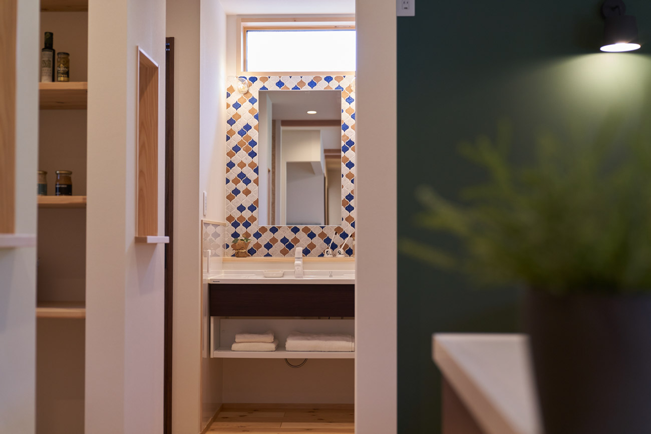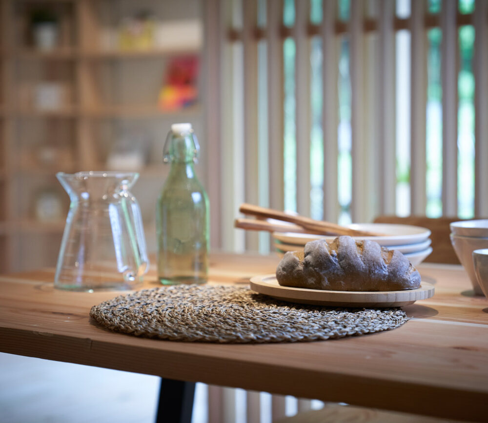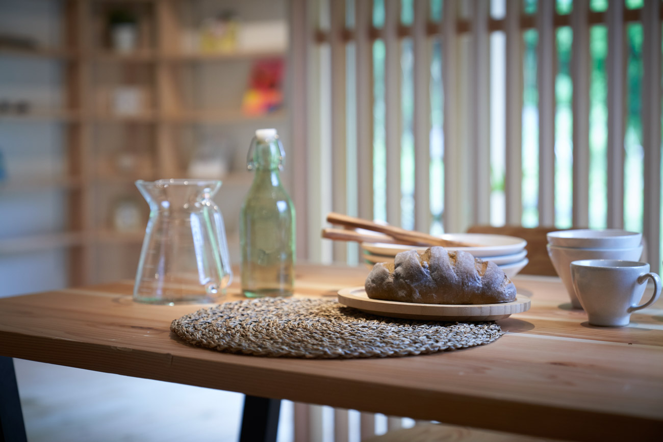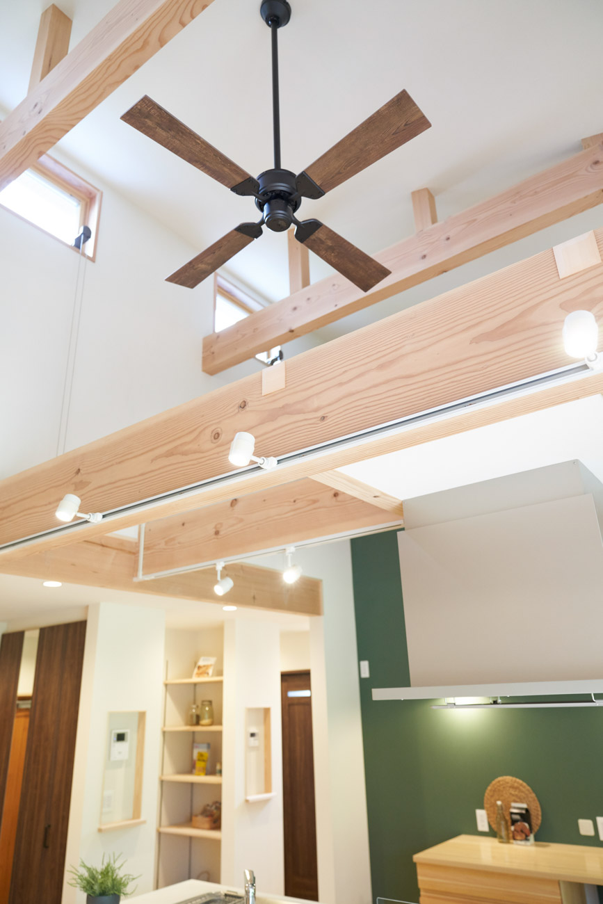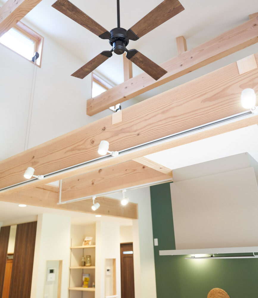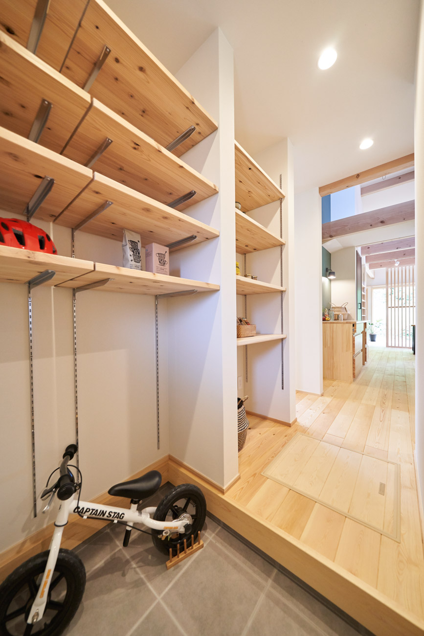 悠々と広がる平屋然とした外観。家族が集まる大きなLDKを内包し、2階には隠れ家のような広い和室。吹き抜けからは家族の気配が程よい距離感で伝わってくる。 Fix窓は一枚の絵のように季節の移ろいを切り取り、それらを楽しみながら、時には雨垂れの音に、時には薪のはぜる音に耳を傾け 思い思いに過ごすライブラリースペース。 プライベートと共用の空間が緩やかにつながり、それぞれが心地よい時間を過ごせる大きな平屋+αのお住まい。 1F 吹抜勾配天井の薪ストーブリビング 借景のライブラリースペース 回遊できる大きな玄関収納 2F 緩やかに隔てられた2階の隠れ家