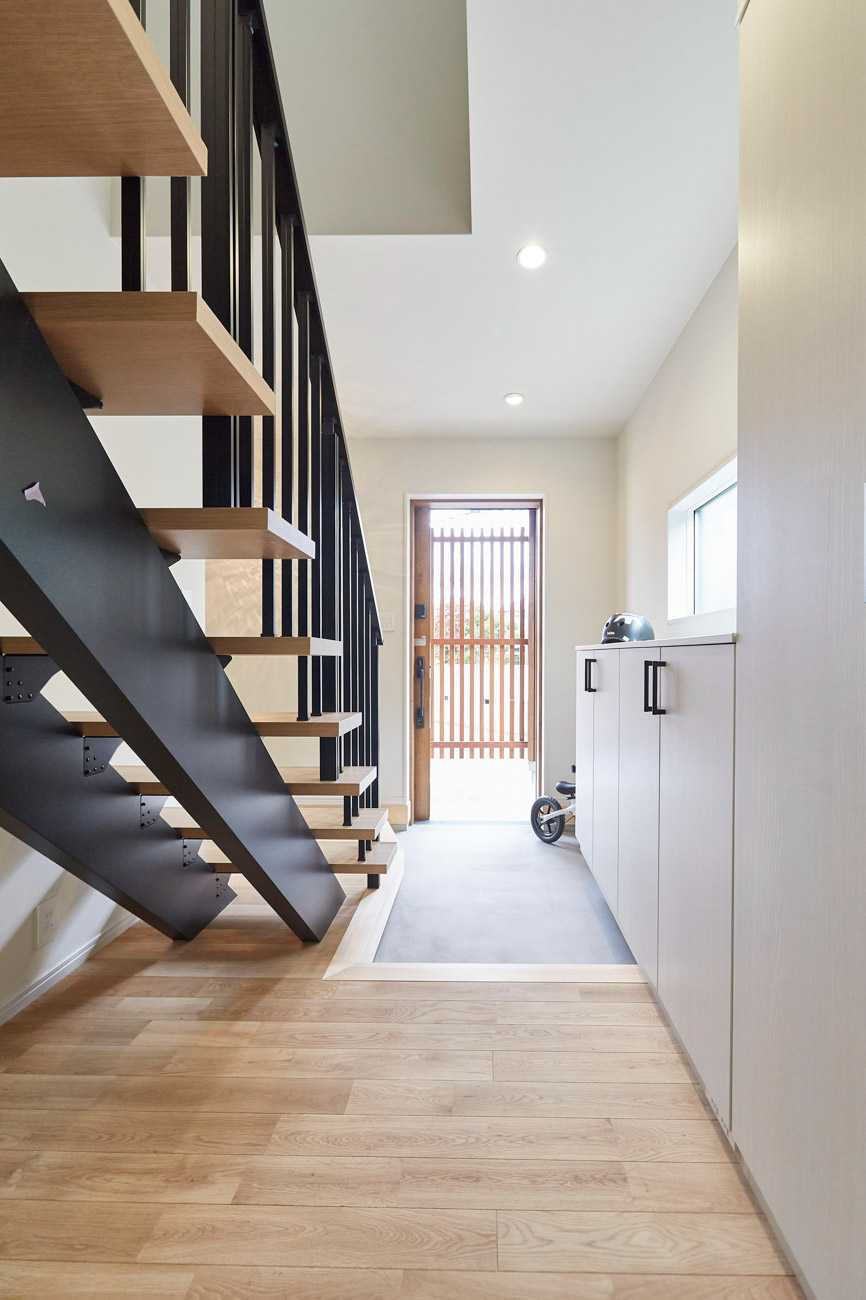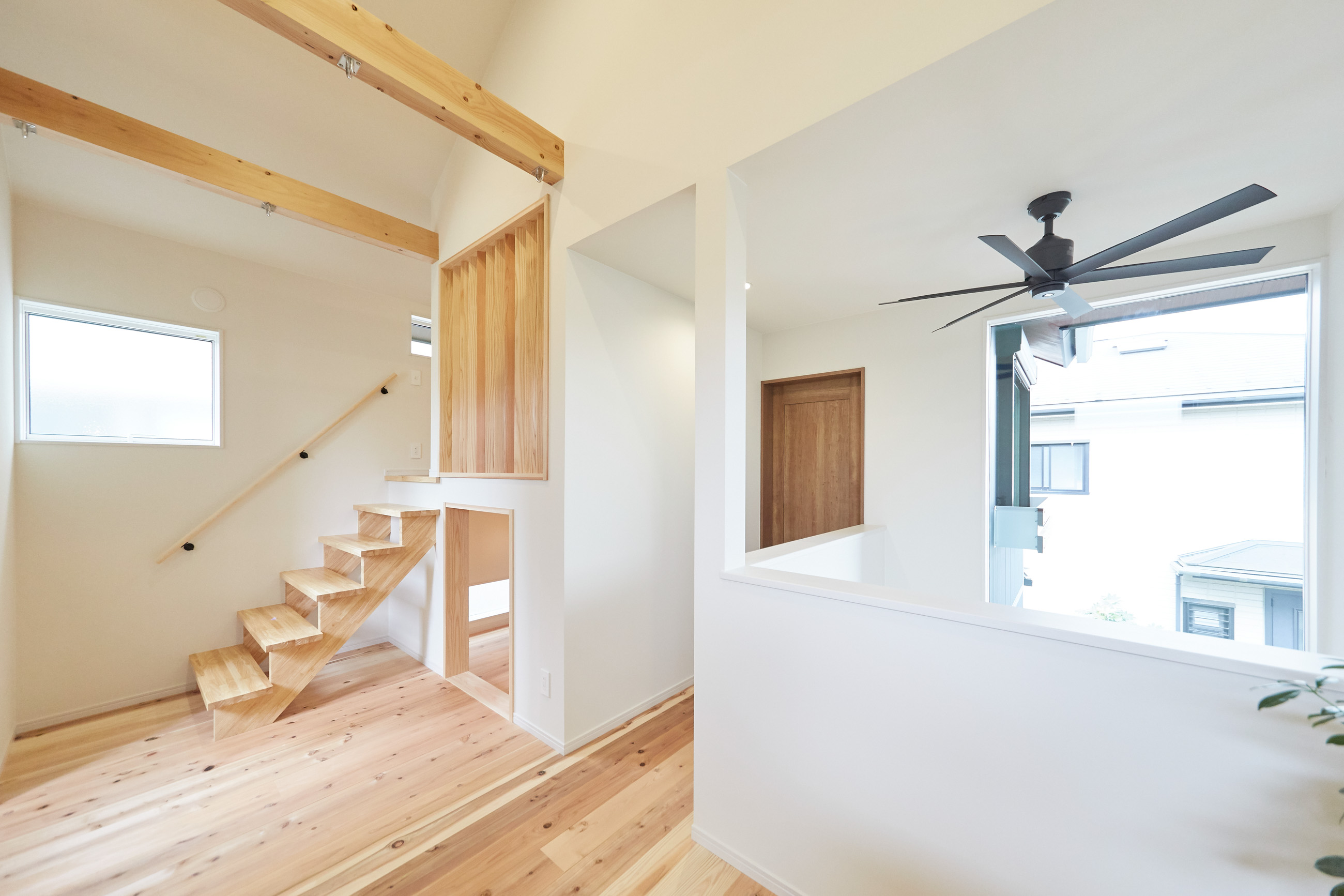 縁側やウッドデッキ、玄関スロープ、ランドリールームに各所の収納など充実の設備を内包しているお住まい。多彩な設備や動きやすい動線を上手に配置し、プライベート空間と共有空間をしっかりと隔てても圧迫感なく余裕の感じられる、暮らしやすいプランニングが実現いたしました。