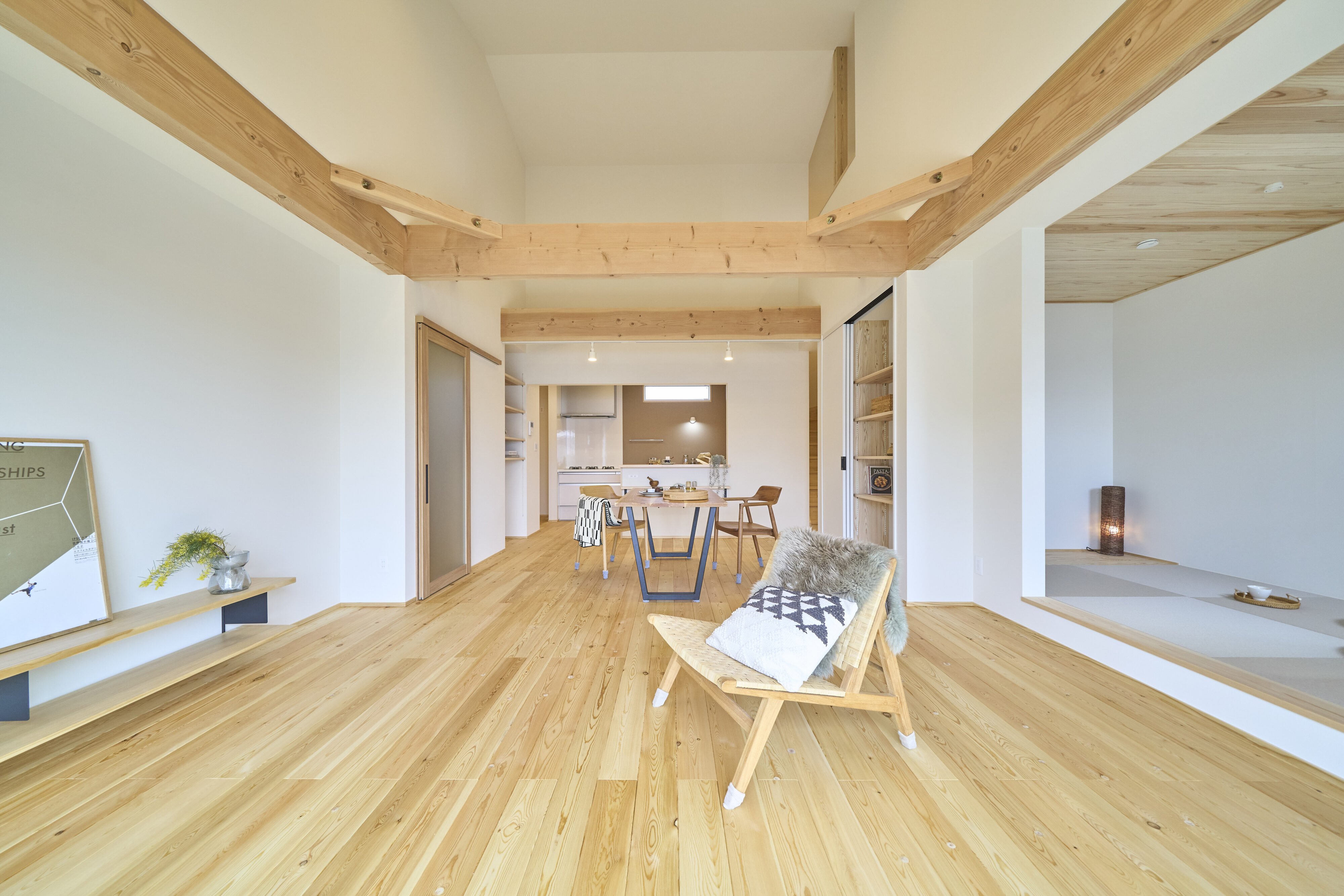 LDKに加え、主寝室や水まわりもすべて1階に配置し、