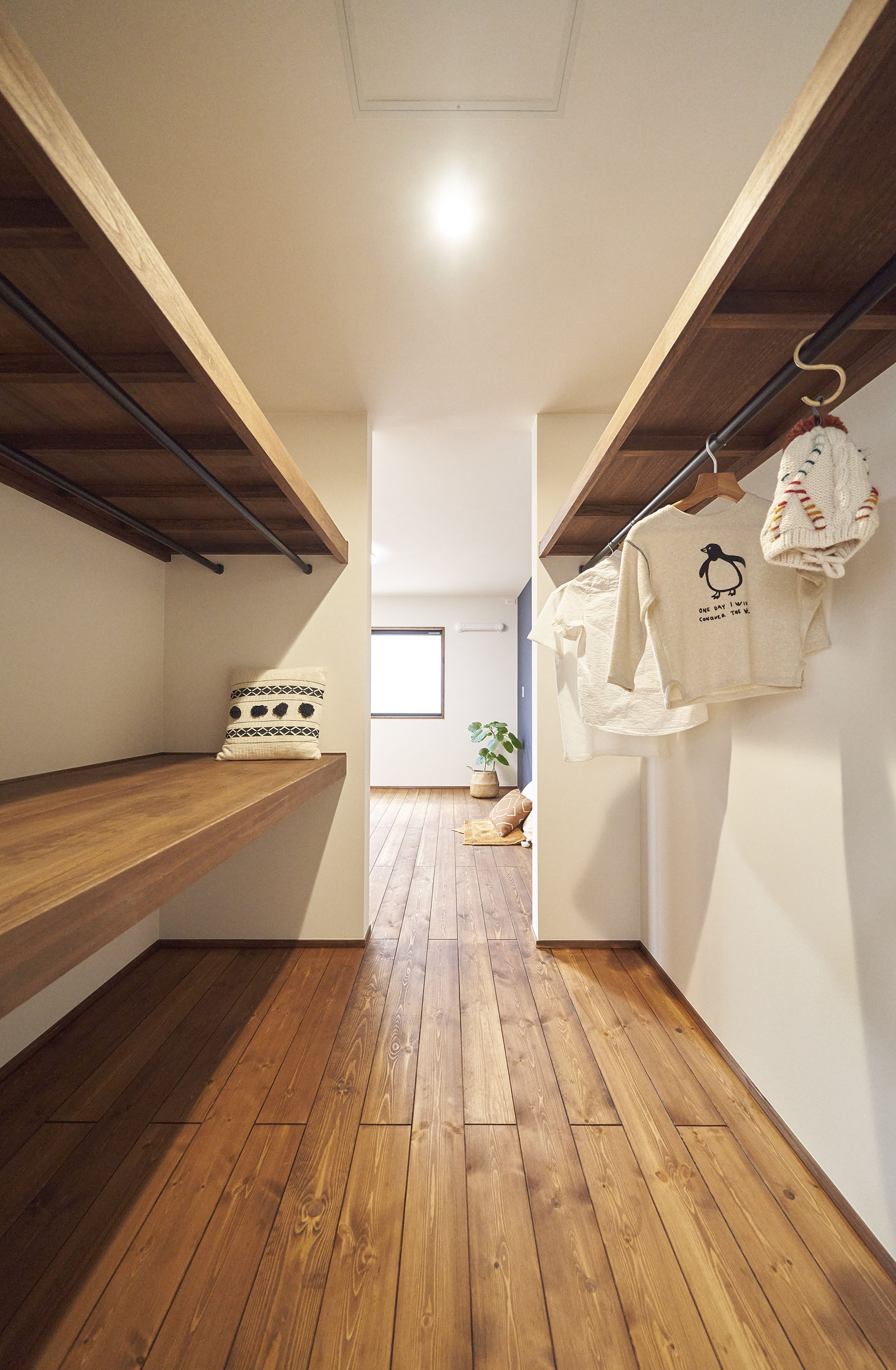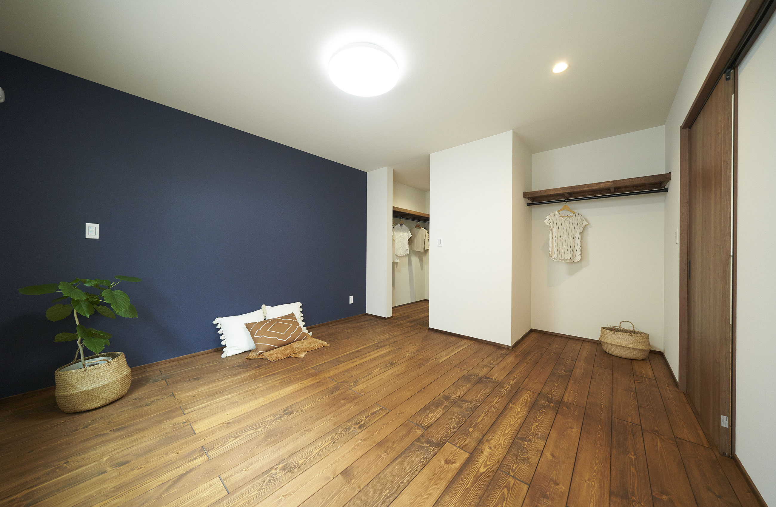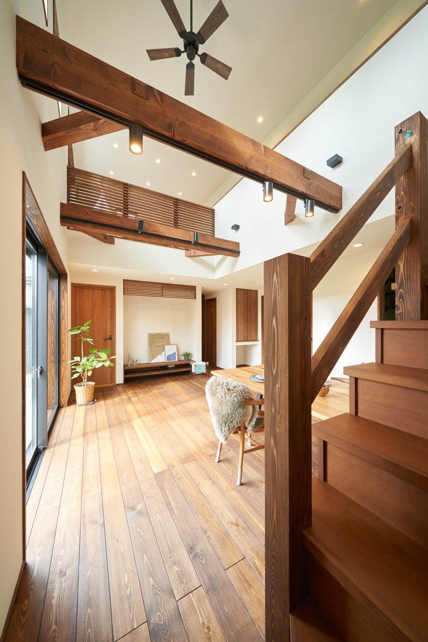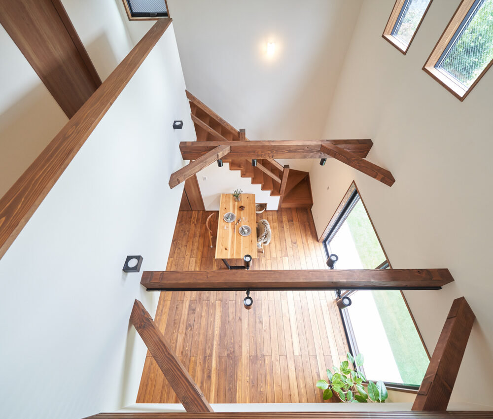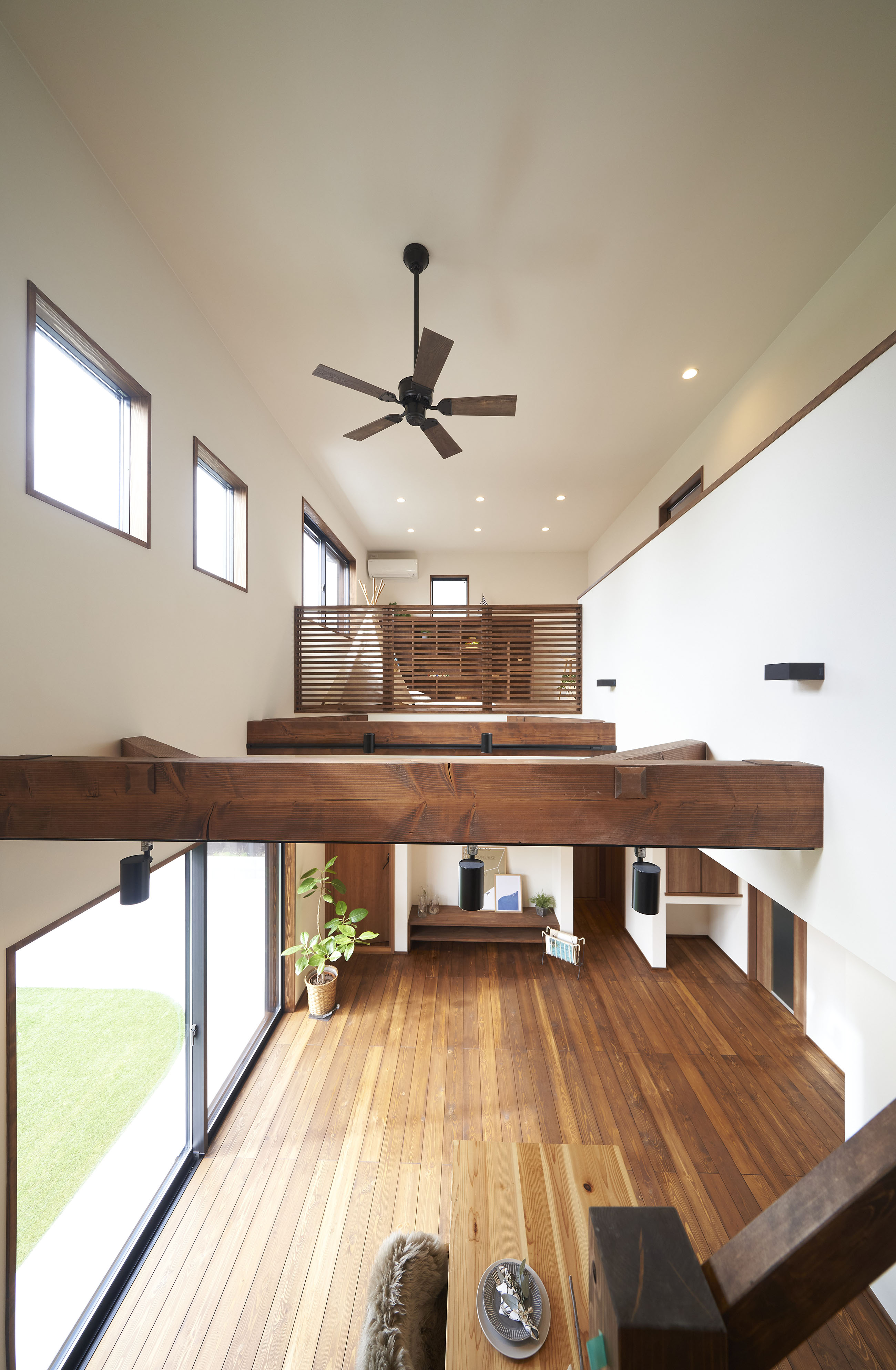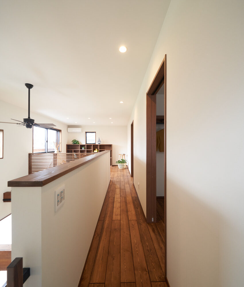 建主様の「箱型の家に住みたい」というご希望と、シムラのスタンダードプランがぴたりと一致しました。玄関側に窓を設けず、箱型のフォルムを強調することで、シンプルでありながら存在感のあるデザインに仕上がっています。