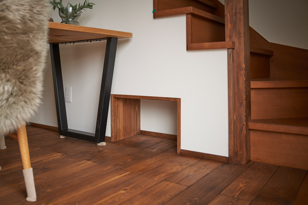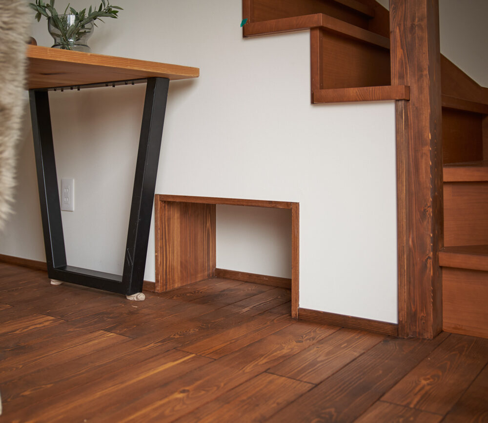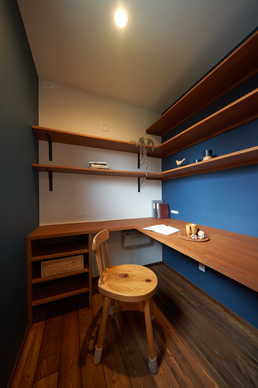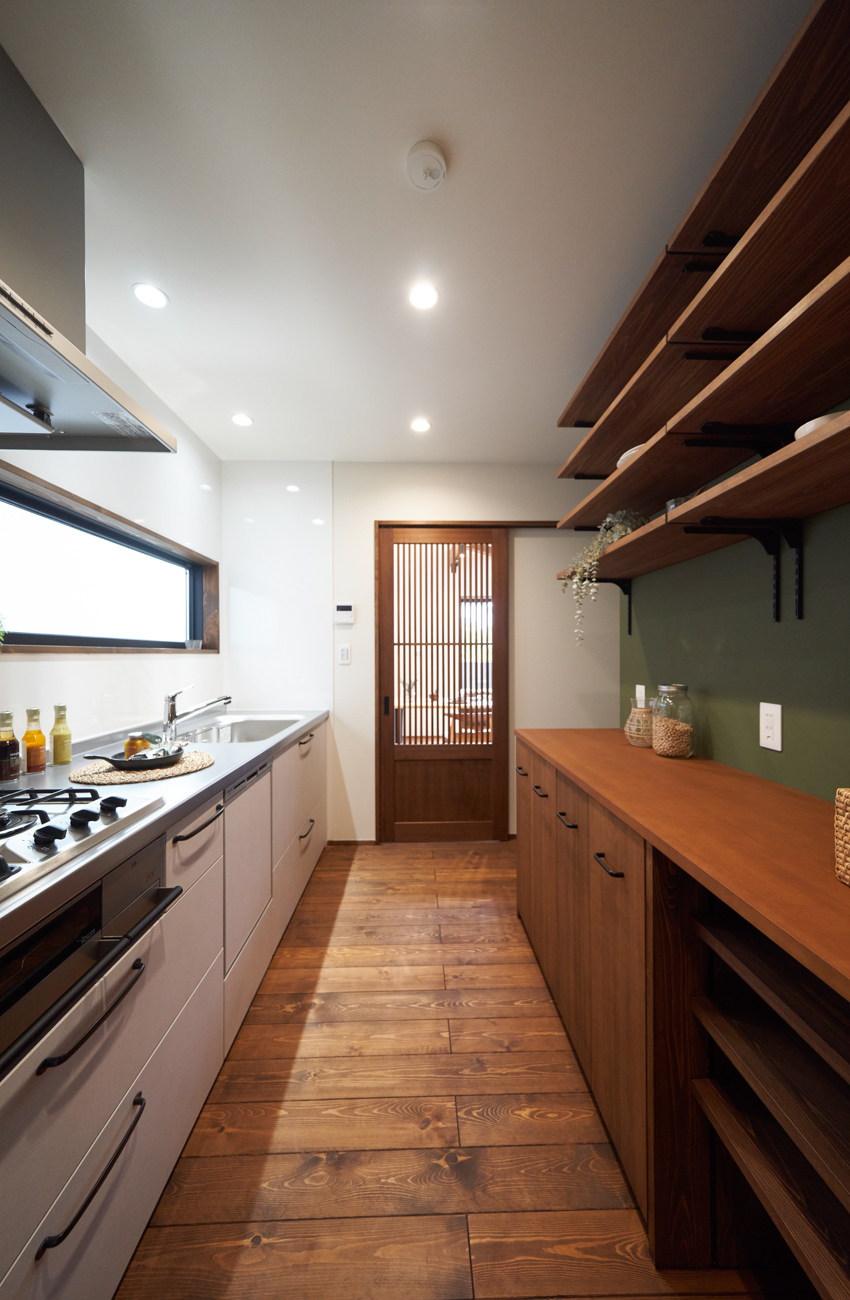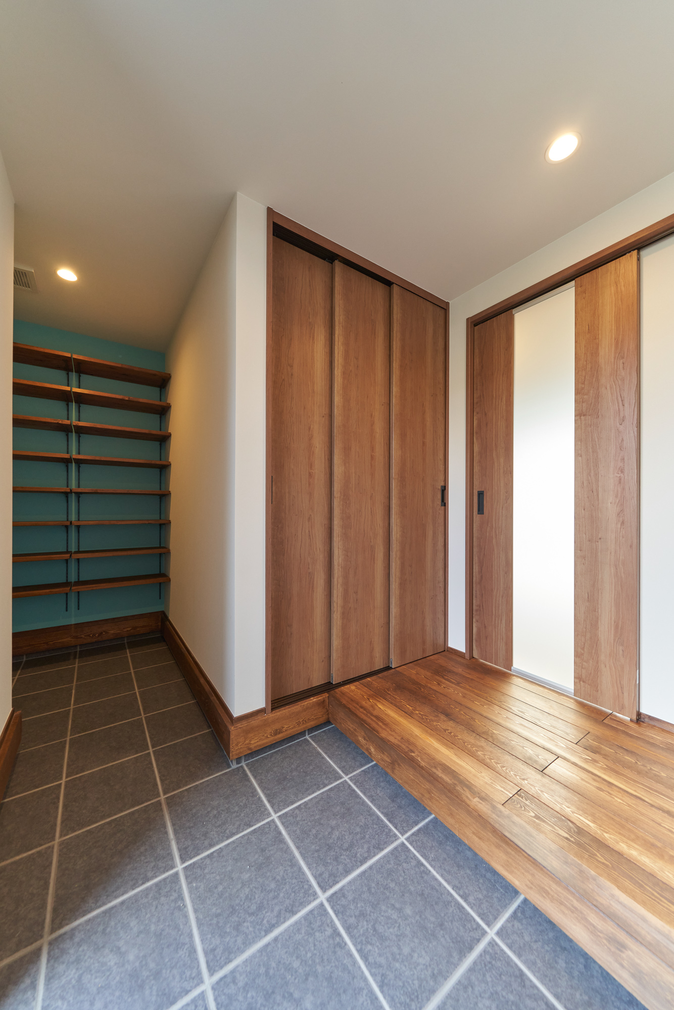 建主様の「箱型の家に住みたい」というご希望と、シムラのスタンダードプランがぴたりと一致しました。玄関側に窓を設けず、箱型のフォルムを強調することで、シンプルでありながら存在感のあるデザインに仕上がっています。