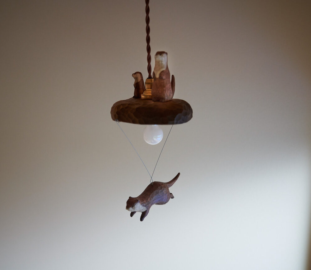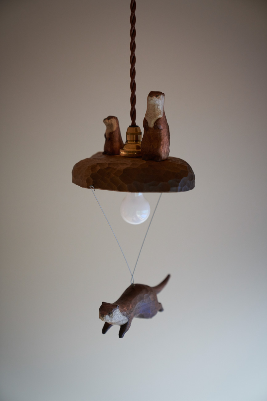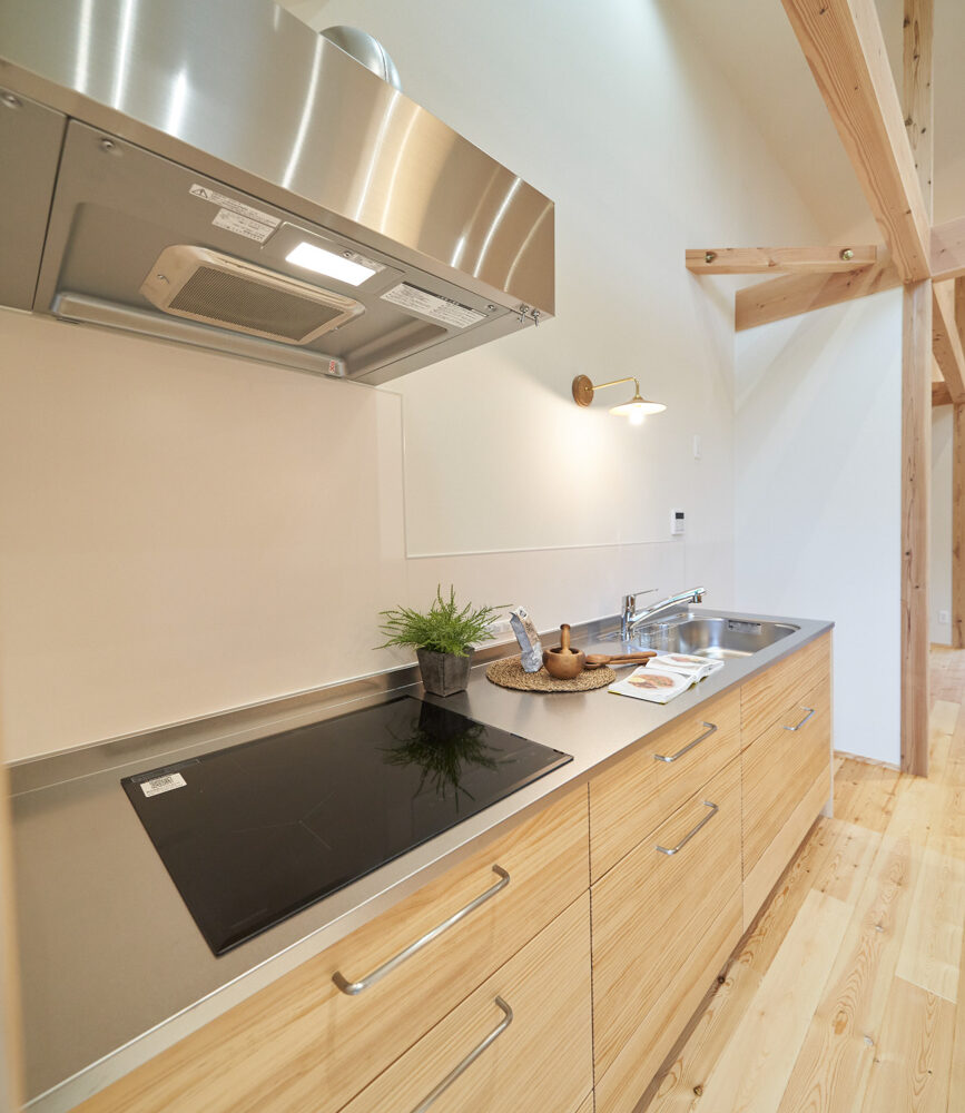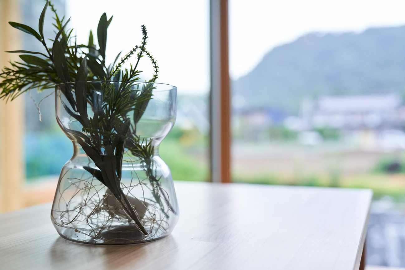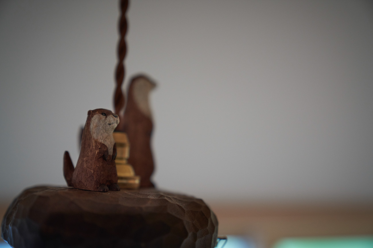 吹き抜けでつながる上下階一体の大空間。使い方様々な広い土間。心地よくまどろむヌックスタイルの寝室。ぐるりと動きやすい回遊動線。シンプルなプランに、機能性とこだわりと余白を心地よくミックスした平屋スタイルのお住まいです。 大開放の吹き抜けリビング 圧倒される大きな吹き抜けでつながる上下階。1Fで暮らしが完結する平屋スタイルでシンプルにプランニングされています。土地の特徴を活かし、近隣の長閑な風景を大きく切り取る窓の配置で、家中に外光と風を届けてくれます。玄関の土間は通り土間のように広く、モルタルのシンプルな仕上げに。 造作でキッチンとリビングに棚を制作。備え付けのため、地震などにも倒れることがないので安心。 吹き抜けでつながるフリースペース 2階は広い仕事部屋。家族の変化に伴って、個室として利用することも。トップライトをつけて明るさを。 かわうそが住むヌックベッド コの字に杉のパネリングで装ったヌックスタイルの寝室は居心地抜群。かわいいカワウソ家族の照明が照らしてくれます。 機能性を集約した回遊動線 ダイニングから寝室を通ってリビングへ回遊できる動線。動線上には手洗い・洗面・浴室・ランドリースペース・オープンクローゼットと、機能設備が並んでいて、家事でのアクションがコンパクトに。