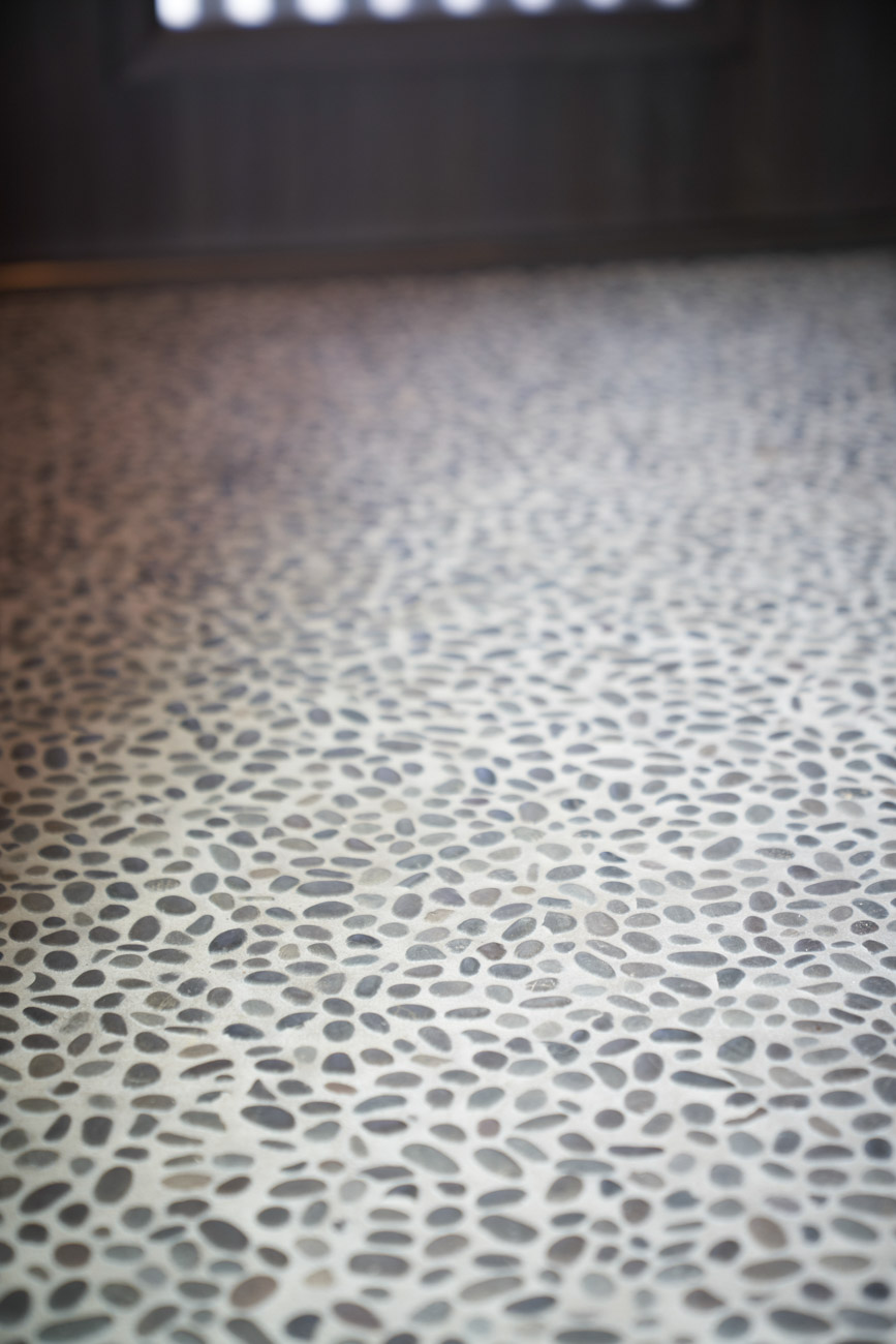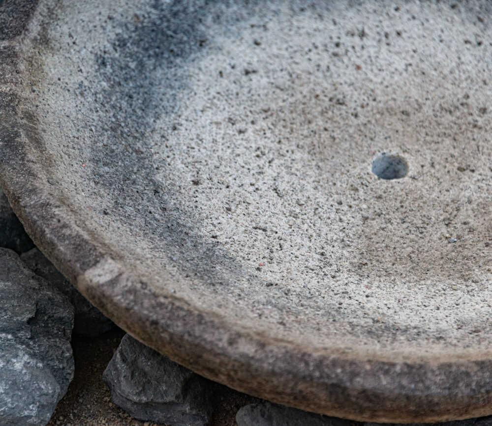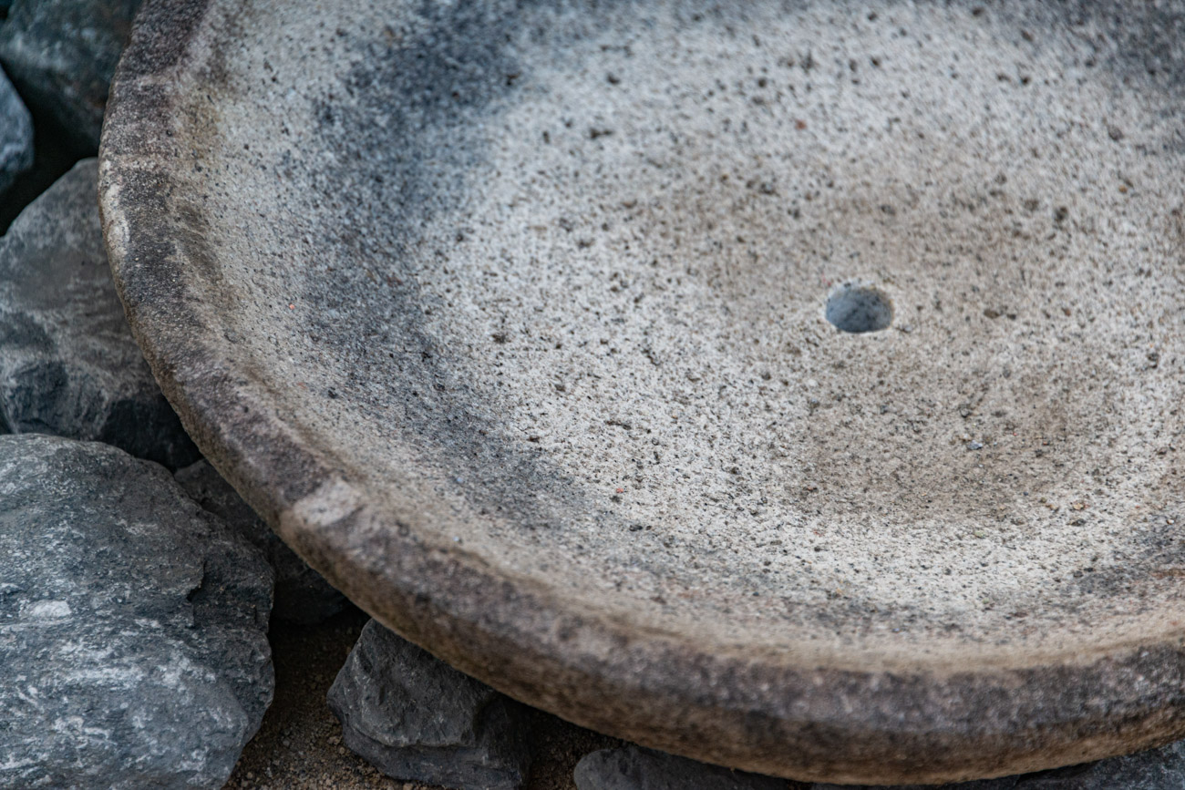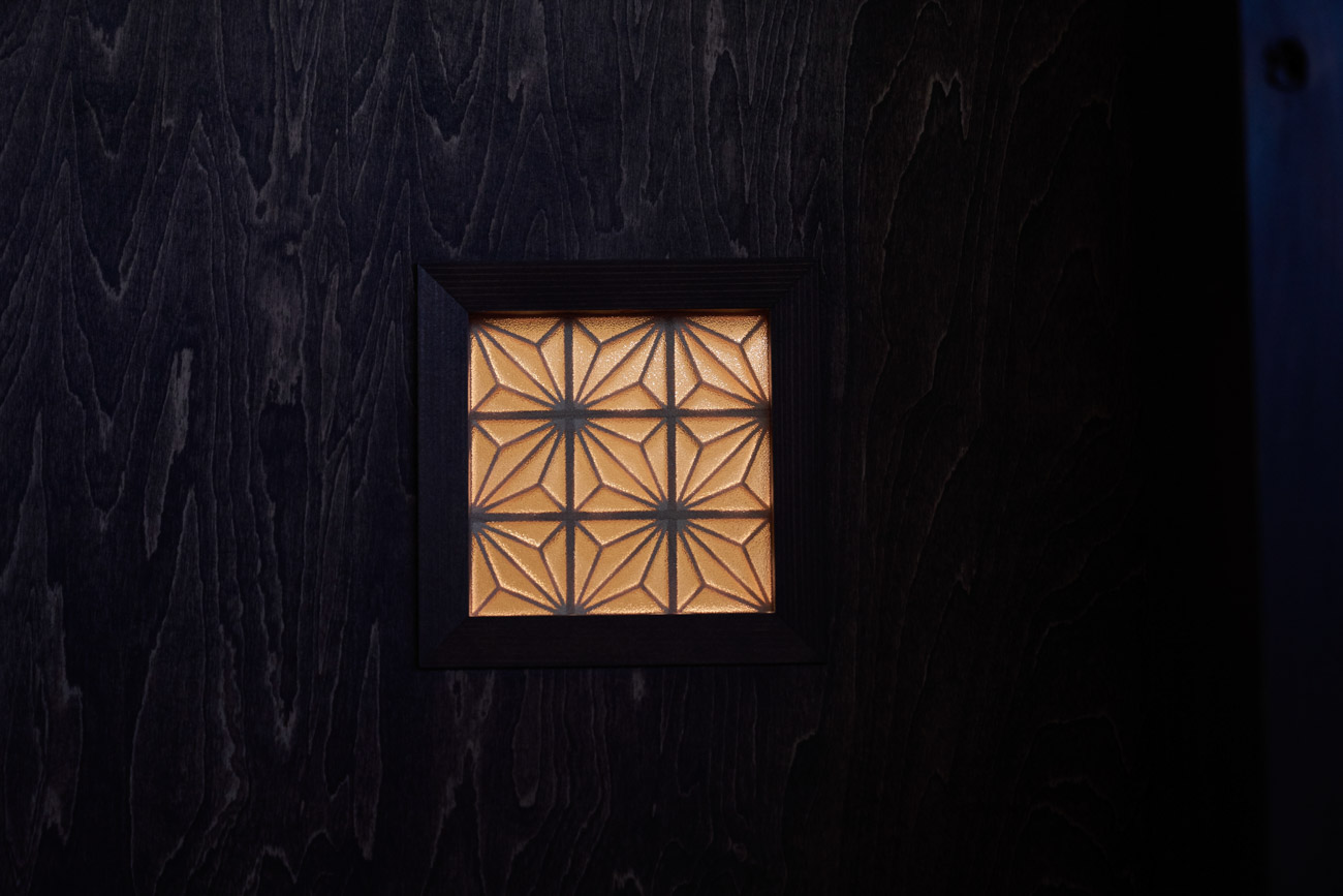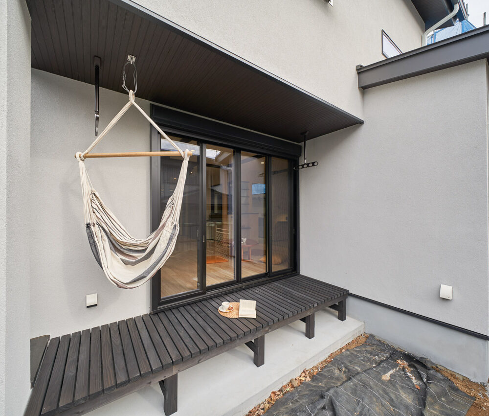 玄関の三和土から続く通り土間をイメージした広い土間スペース。黒紫色に染められた重厚な梁や柱、シンボリックな丸窓、造作扉の明かり窓を組子とガラスや障子で仕上げたりと細部までこだわりを散りばめています。和室の丸窓からは季節ごとの趣を楽しめる金閣寺垣の風情あふれる庭。ご自身で選ばれたアンティークの家具や古い欄間をリメイクした小物などを設置され、統一感のある空間となっています。