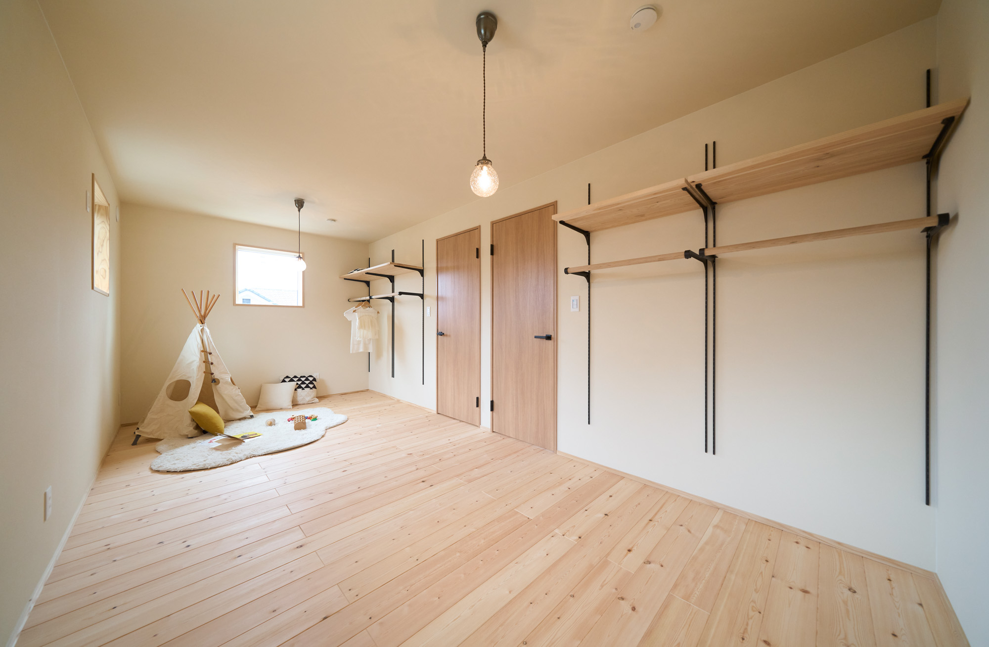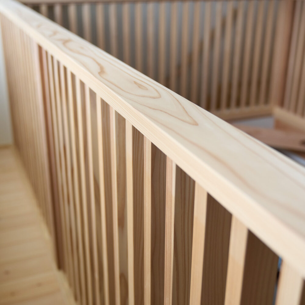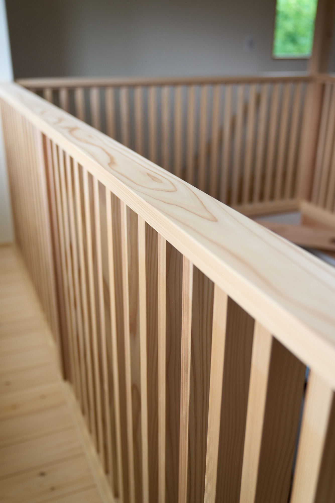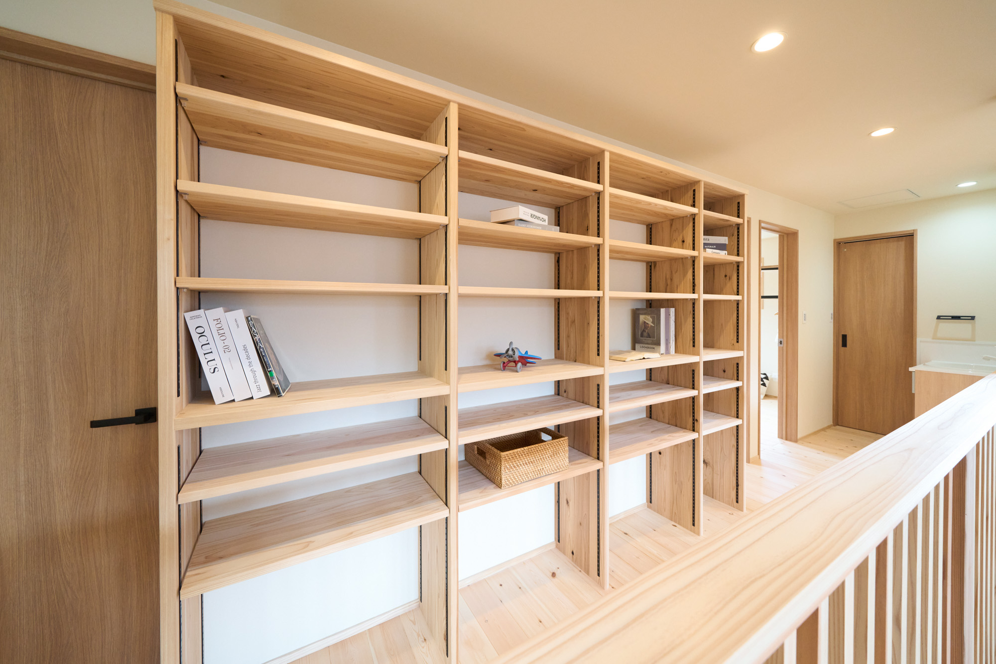 住空間の真ん中に位置する吹き抜けにはキャットウォークを設置し、子供達がぐるりと走り回れたり採光窓の掃除もしやすい設計に。
