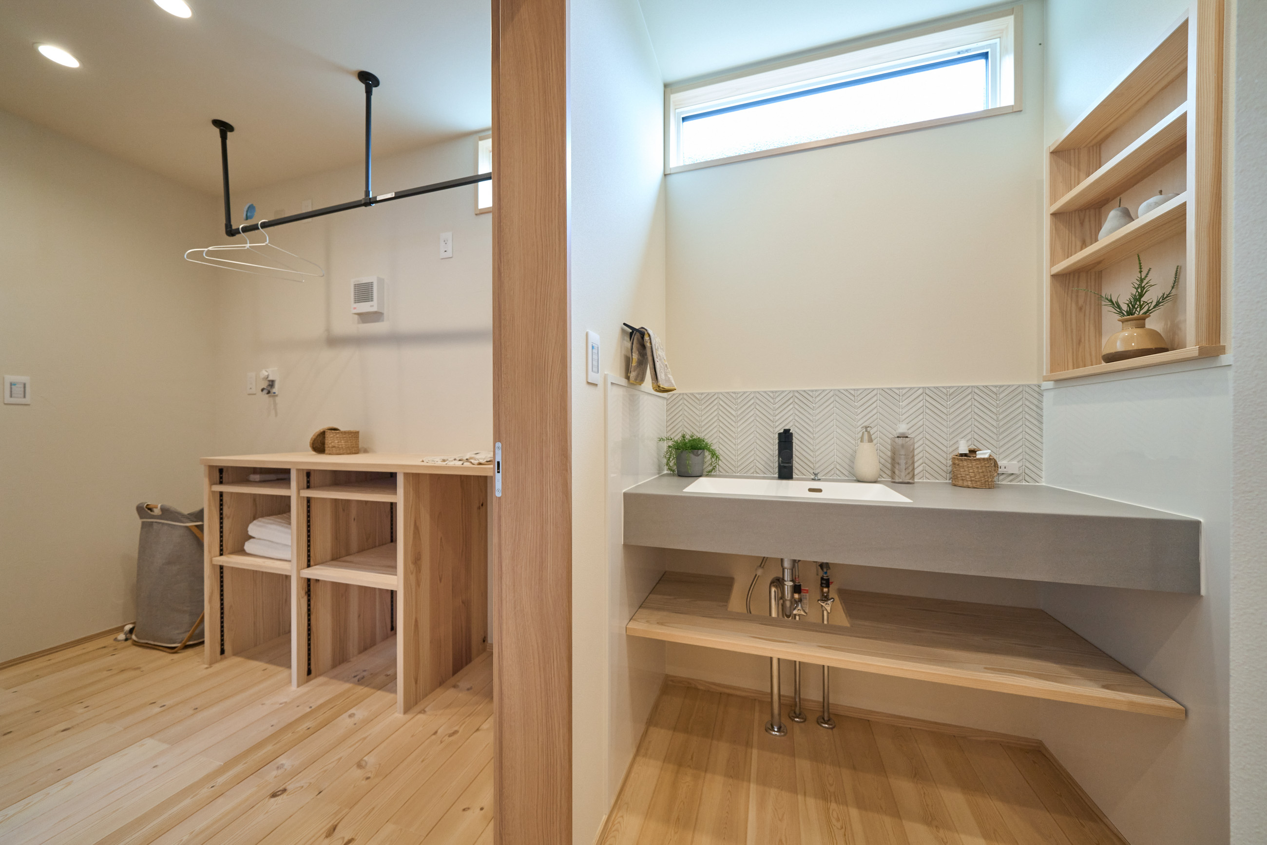 動線内に家事設備を配置し、どこにいてもどこへでも移動できるため、家事の効率もアップ。