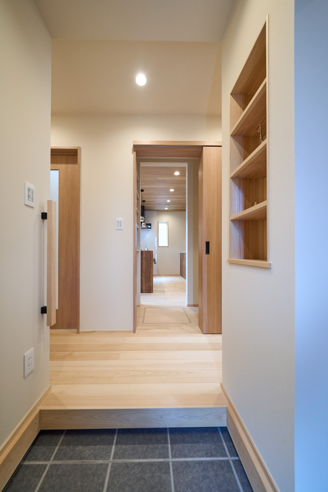 玄関からは三方向へと移動できる8の字のような回遊動線。