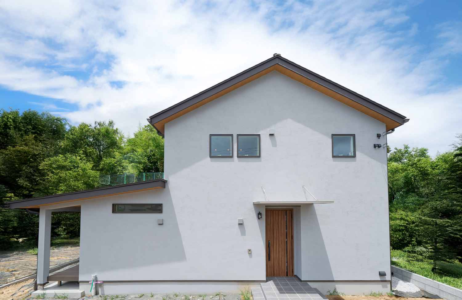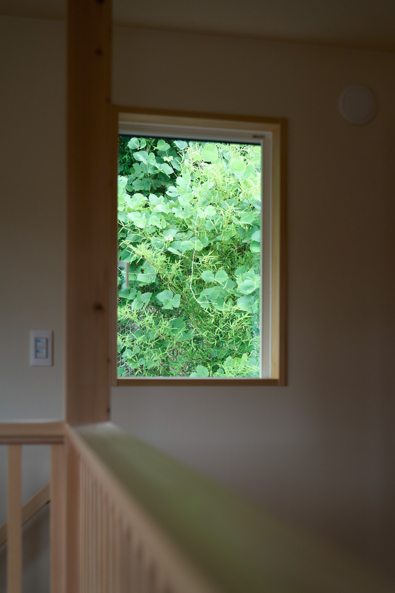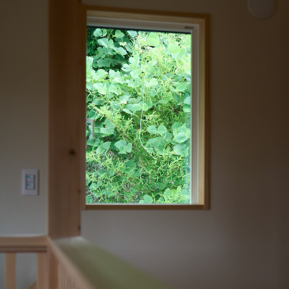 実はこのキャットウォークが2階の南窓からリビングダイニングへの日射を遮蔽する役割を持っています。奥行きを検討し太陽高度78度~59度(夏至から9月中旬まで)ではキャットウォークに遮られ南中高度の際に直射日光が入らないようになっています。これに加え、1階下屋の軒の出を長くすることにより、1階南側からの日射を遮蔽しつつリビングからキッチンの奥まで年間を通じ明るくすることができます。