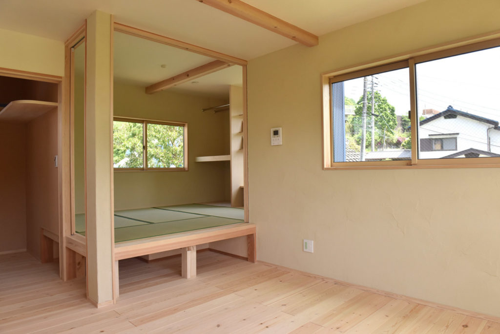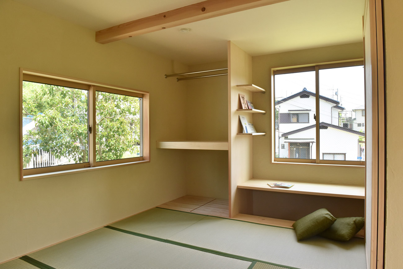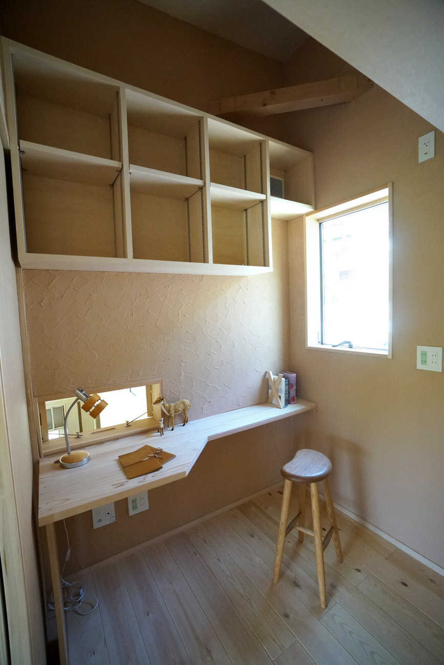 2階には書斎や小上がりの和室もあり、どの空間もつながりを持たせた設計に。どこにいても家族の気配を感じられる、心地よく、遊び心あふれる住まいです。