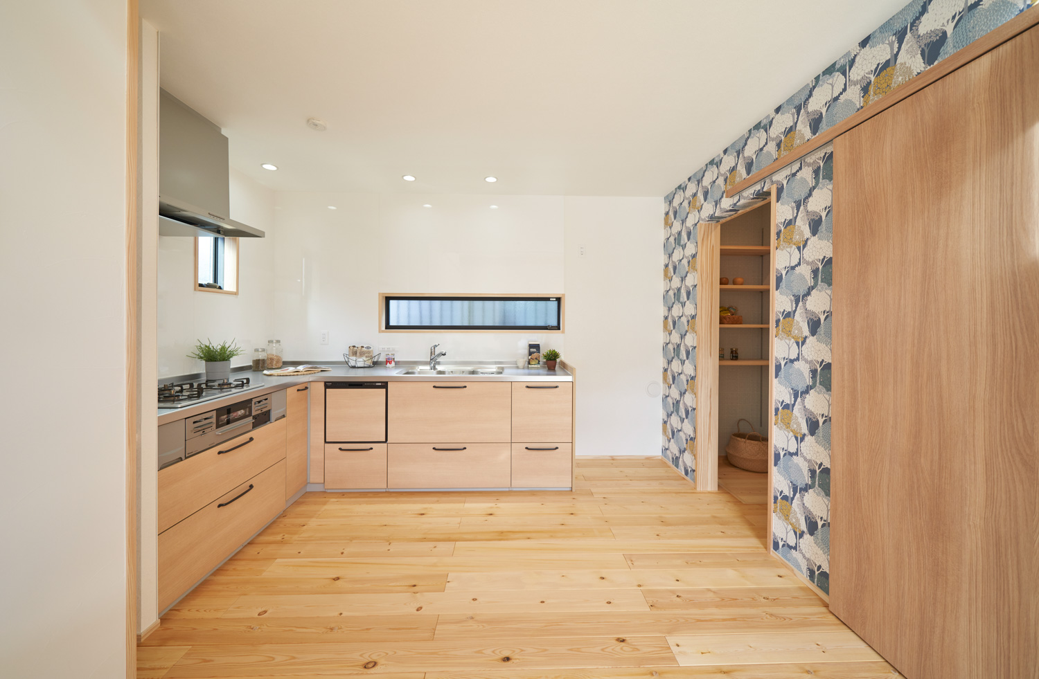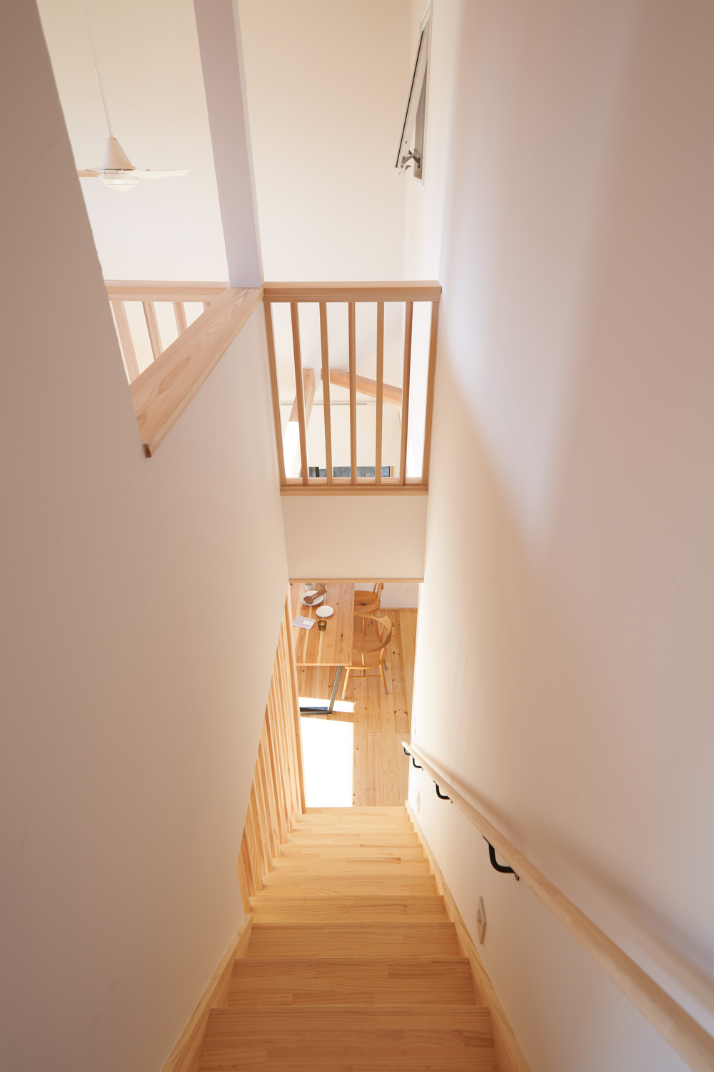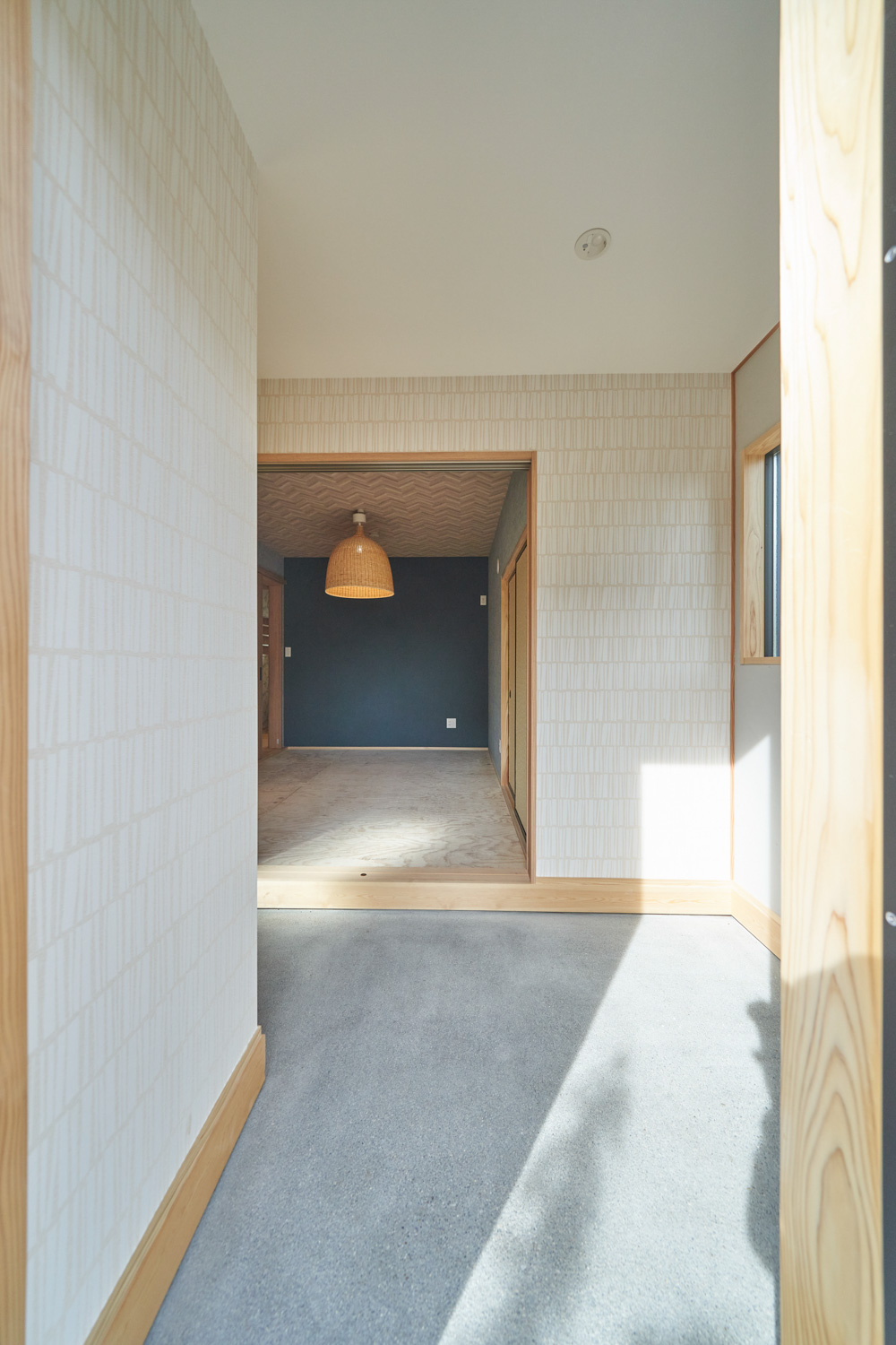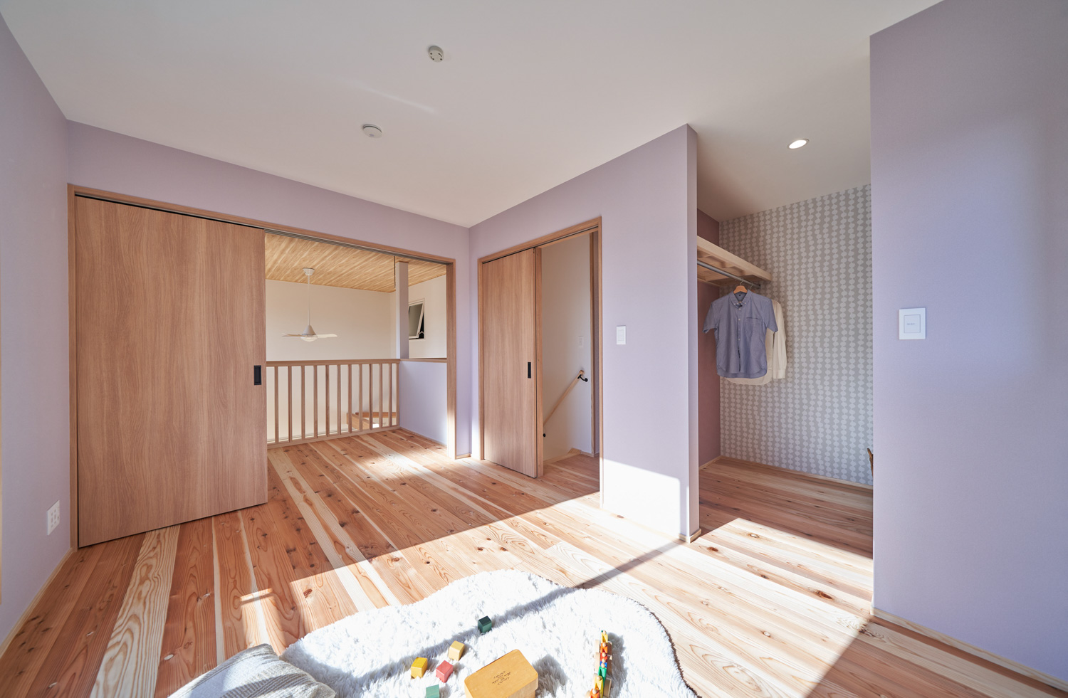 ご両親との思い出が詰まったご実家。年月とともに住みにくさが気になり始めたことをきっかけに、建主様は「リノベーション」という選択でこの家に新たな命を吹き込まれました。 構造だけを残してスケルトンまで解体し、間取りを一から再構築。梁を渡して吹き抜けを設け、断熱材の充填や設備の一新など、性能面も現代の暮らしにしっかり対応。内装には、シムラが得意とする自然素材を随所に採用し、ぬくもりと快適さに満ちた空間へと生まれ変わりました。 1F 大きな吹き抜けを設けた開放的なリビング 2F 無垢な素材